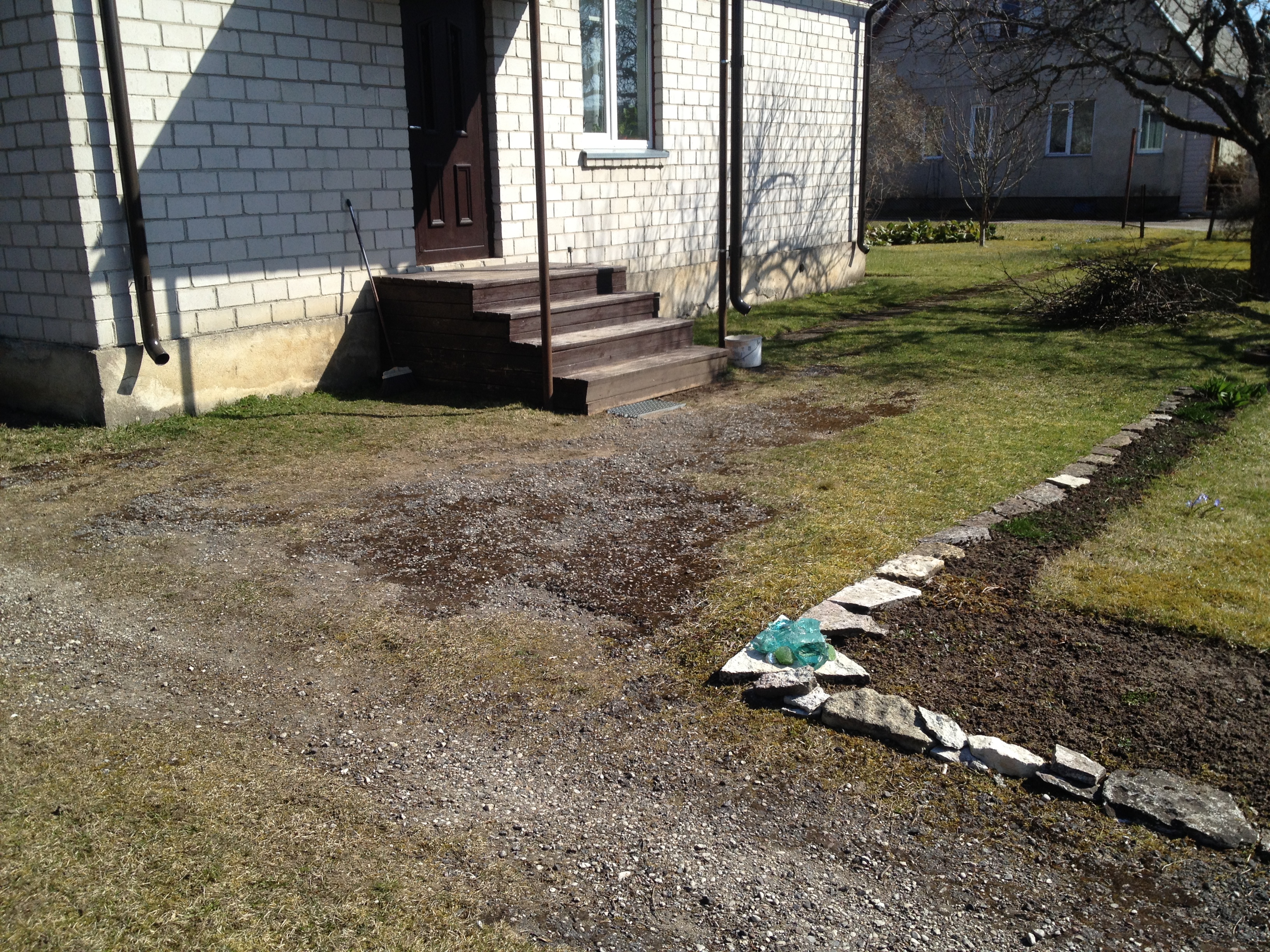 Kahe sadeveerennist alla tulevate torude juhtimine maasse läbi kiviparketi. Eesmärk et sadeveerennidest tulev vesi ei jookseks kivi peale