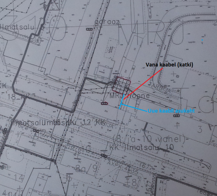 Maa-aluse elektrikaabli (2 kaablit ühte kraavi a100A ja 63A) paigaldus. Liitumiskilp on alajaama seinal, kuhu ühendatakse kaks eraldi liitumist. Ühe kaabli pikkus on 30m ja teisel 44m, millest maa all (parkla) on 16m. Hinnapakkumisse pole vaja ühenduste tegemist.