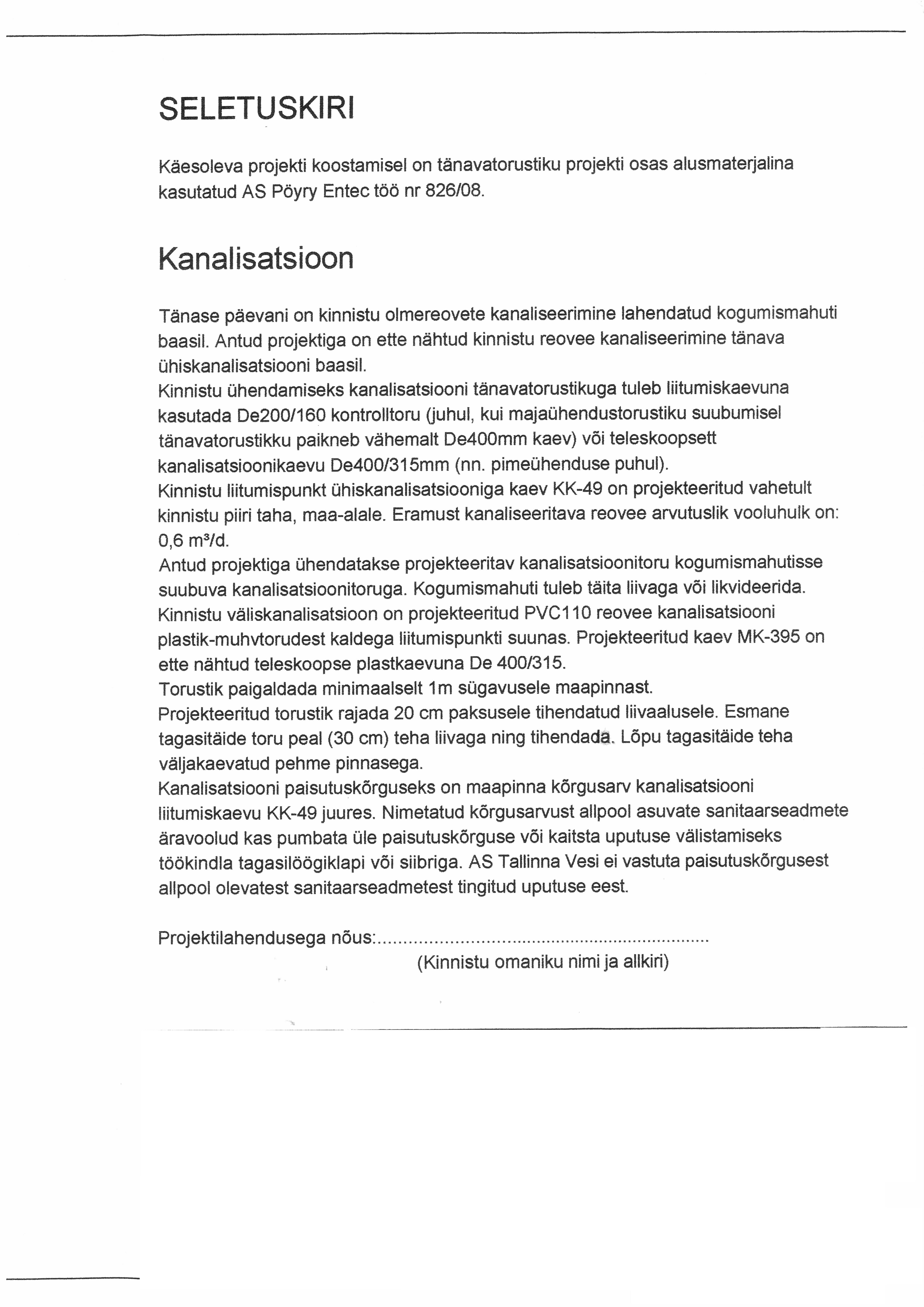 Soovin hinnapakkumist tsentraalse kanalisatsioonitrassiga liitumiseks kinnistusiseste ehitustööde tegemiseks. Liitumisprojekt on tehtud, liitumisleping olemas ja liitumistasu makstud. Päevane veekulu ca 1m3.
