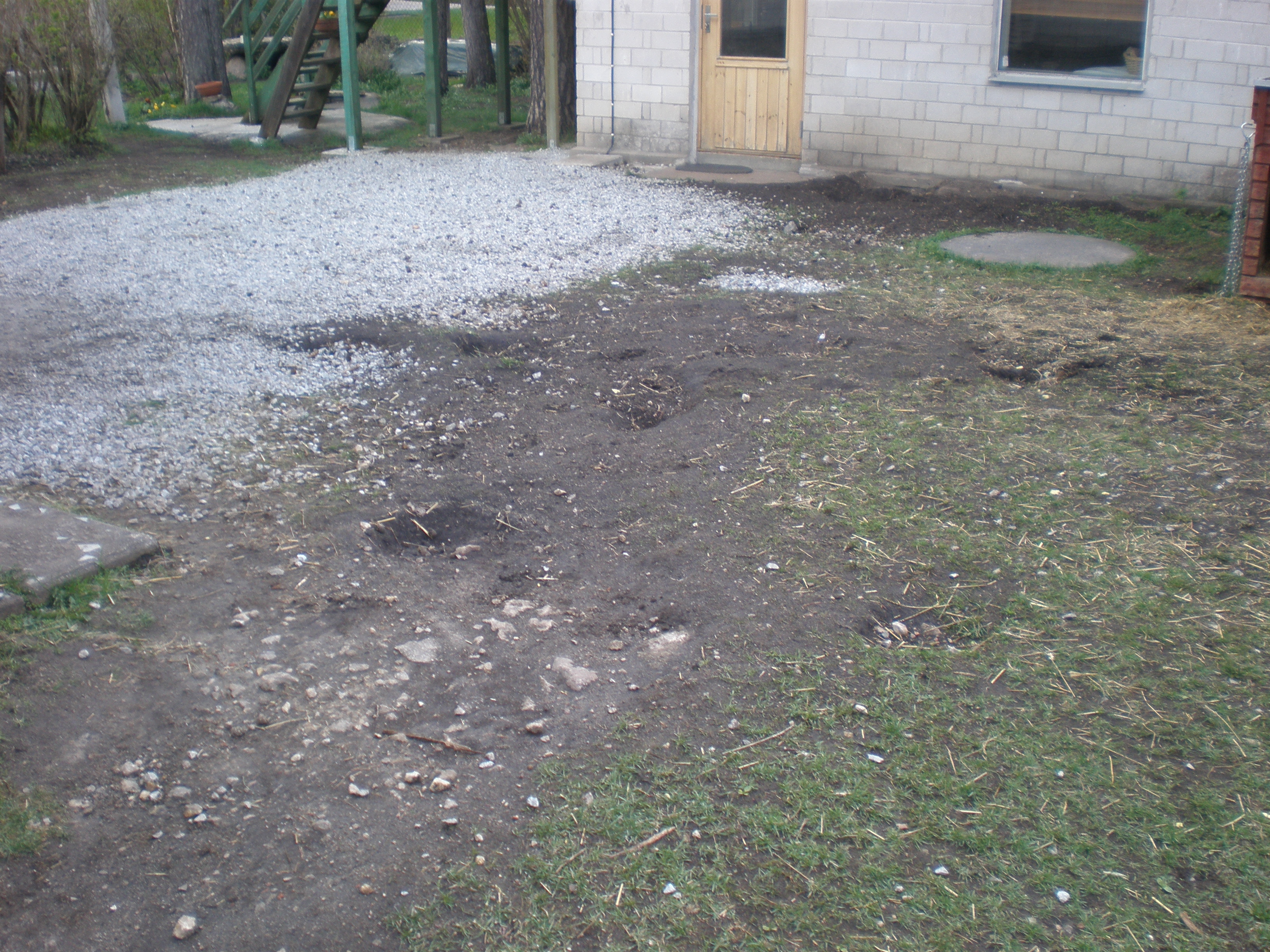 Olemasolev seis: 50% aluspinnast on kaetud ca 20 cm killustikuga, 40% mullapinnas, mis tuleb ära koorida. 10% moodustab 40 a tagasi valatud betoonkiht( kas see tuleb eemaldada või saab paigale jääda: ei oska öelda).