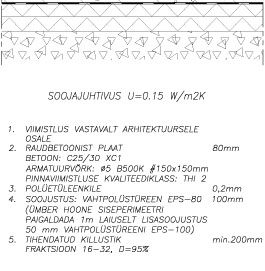 (arm. võrk d5 150x150) 800 eur 2. Polüetüleenkile 500 eur 3.EPS-80 100mm 2396 eur 4.Killustik 16-32 min 200mm (73m3) 4832 eur Kokku 15 428 EUR |