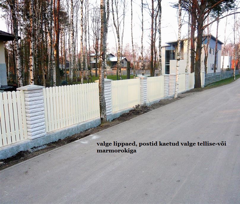 9m valatud alusrajatisega valge puitlippaed + 6m tiibvärav koos automaatigaga +1m jalgvärav tavalise lukuga.