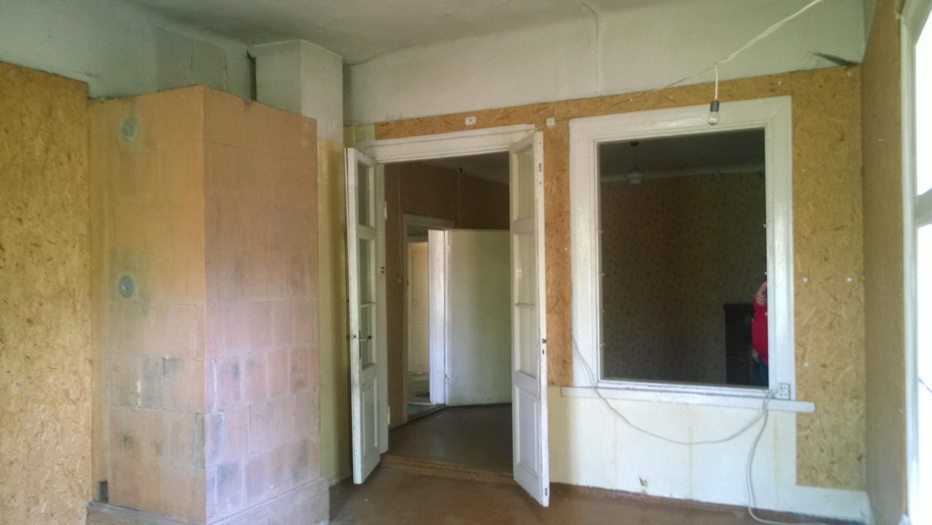 Seinad pahteldada ja värvida valgeks (praegu osaliselt tapetseeritud ja osaliselt puitplaadiga)
