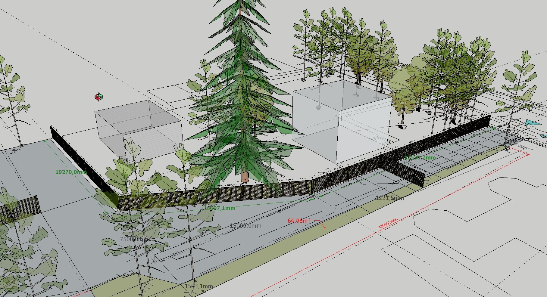 Metallpostid ja aia kõrgus 1,5m Autovärav - tiibvärav - 4m Jalgvärav 1m Ehitusmaterjalid: Hanke võitja poolt |