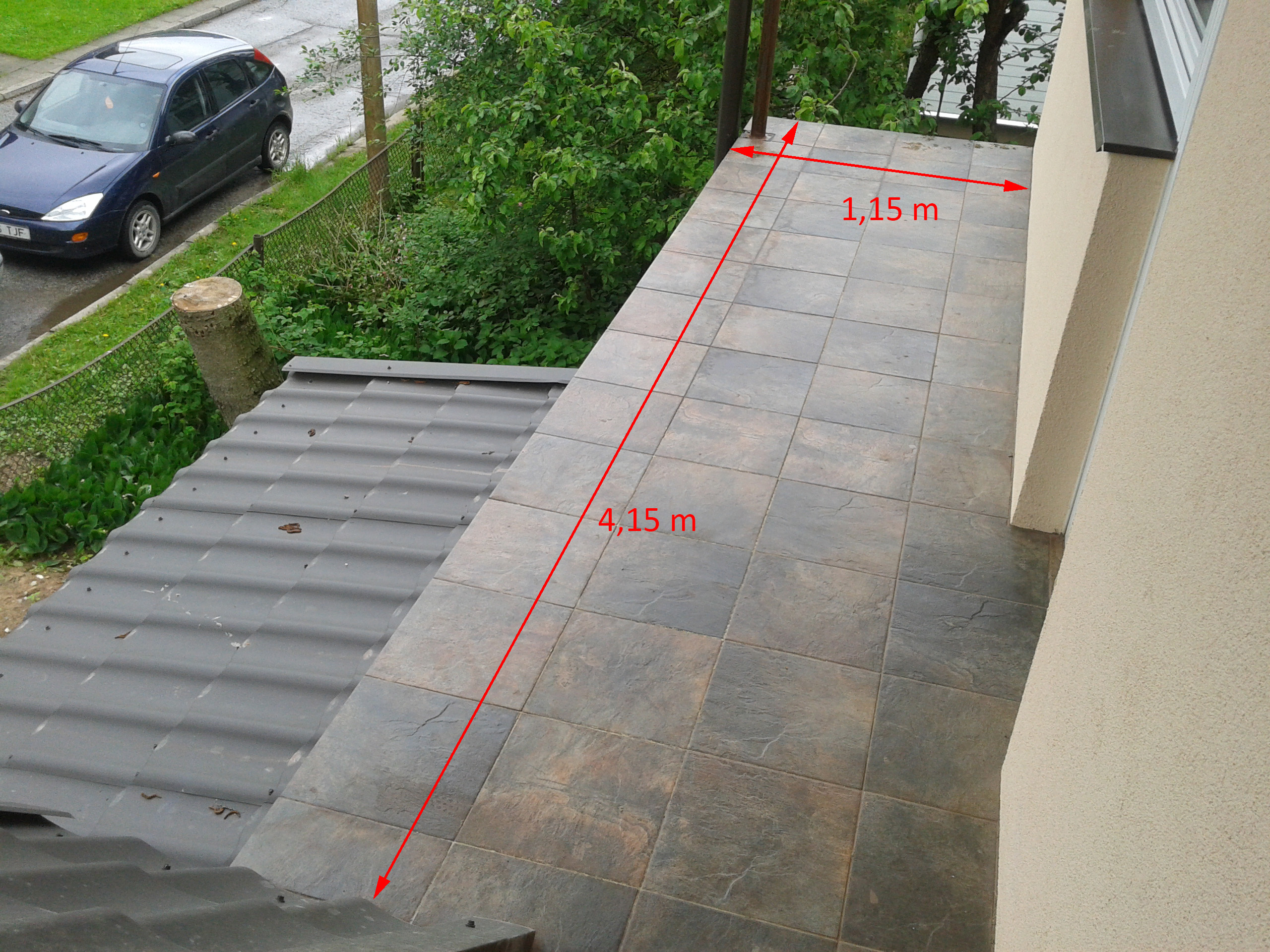 Rõdupiire klaasist paneelidega metallpostidega eraldatud. Rõdu mõõt 4,15 x 1,15.