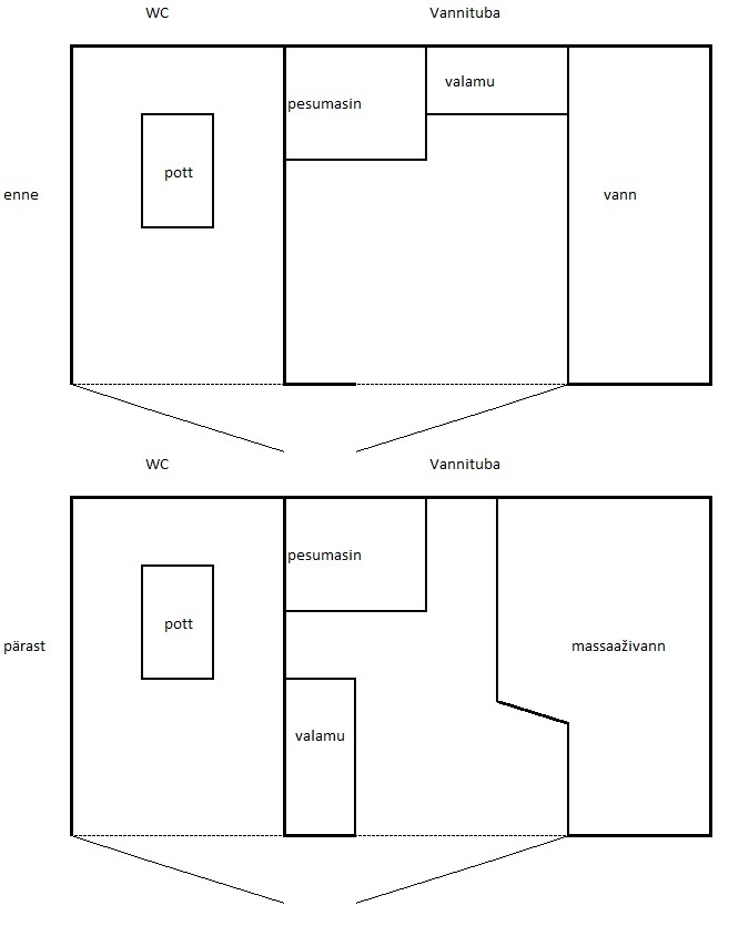* Vannitoas valamu ja käterätisoojendi ümber tõstmine uue massaaživanni (-kabiini?) tõttu.