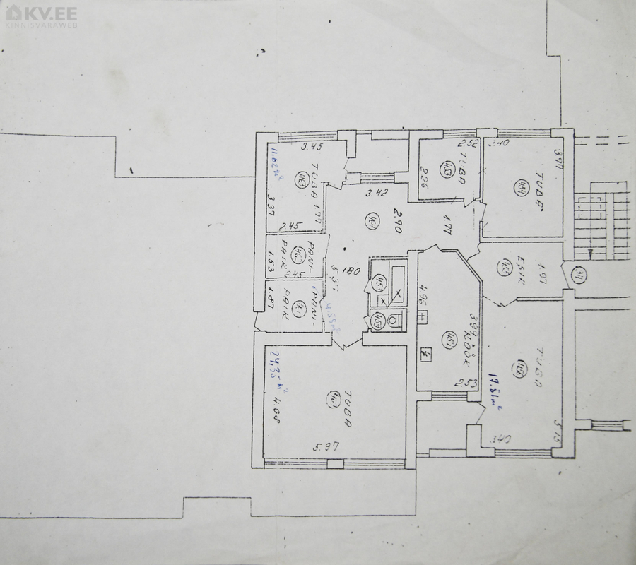 Eriprojektiga 5. korruse korteril 5 tuba + köök. Panipaiku, vannituba ja WC-d pole vaja teha (vt. joonis). Seinte kõrgus keskmiselt 2,50 meetrit