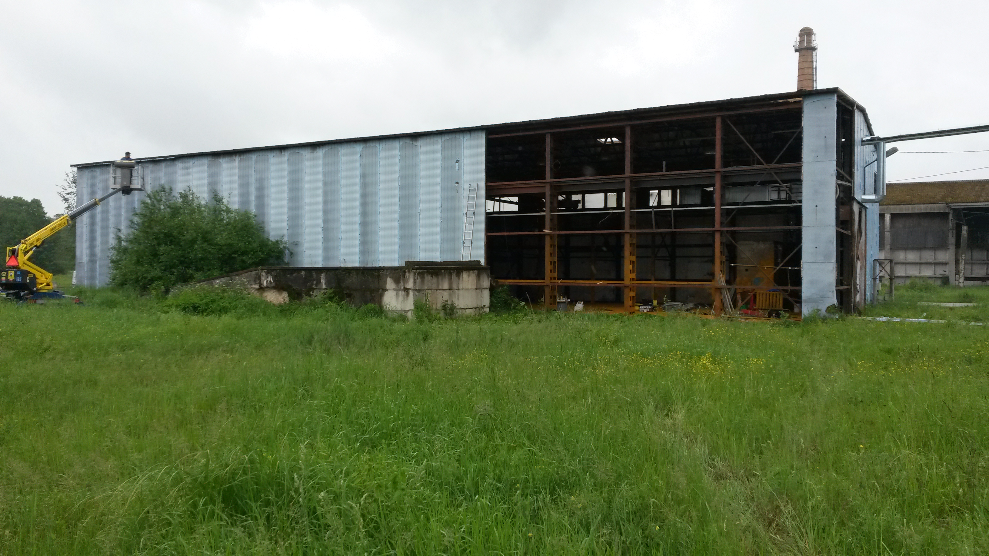 1.Soojustuspaneelide(vaht) eemaldamine seinast ja katuselt. Paneelid on kinnitatud poltidega. Seinapaneelid püstiselt. Seinapaneelide demontaaz käib nii, et seest eemaldatakse liistud, seejärel keeratakse lahti mutrid ja lastakse paneel nööridega maha. Osaliselt on seinapaneelid juba eemaldatud. Räästaplekid on juba kogu perimeetris eemaldatud. Katusepaneelid on samuti poltidega. Mutrid üleval pool. Kui mutrid keerates lahti ei tule, tuleb need maha lõigata. Ühes seinas aknad.
