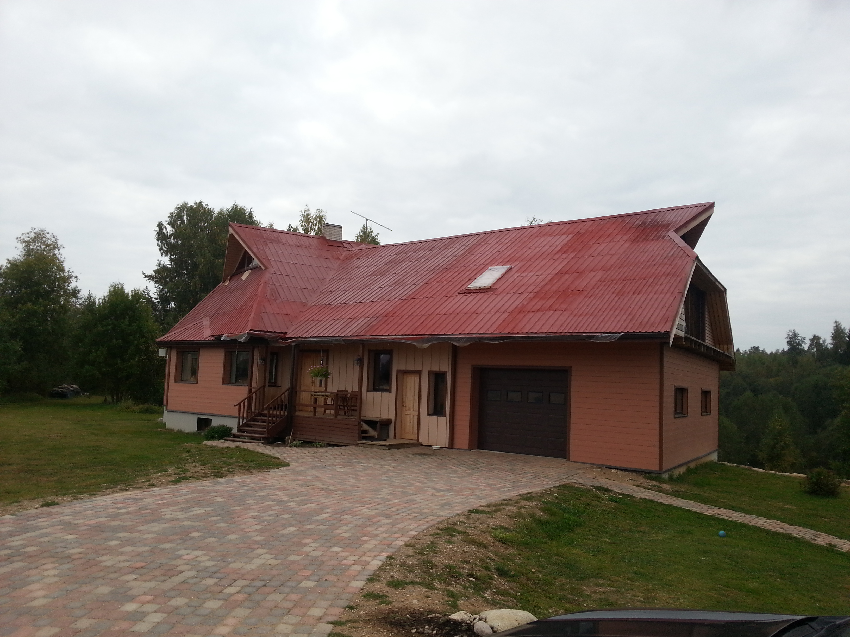 Kaks katuseakent, üks luuk. Maja on T kujuline. Kalle 38kraadi , ühel osal 60kraadi.Värv: pruun
