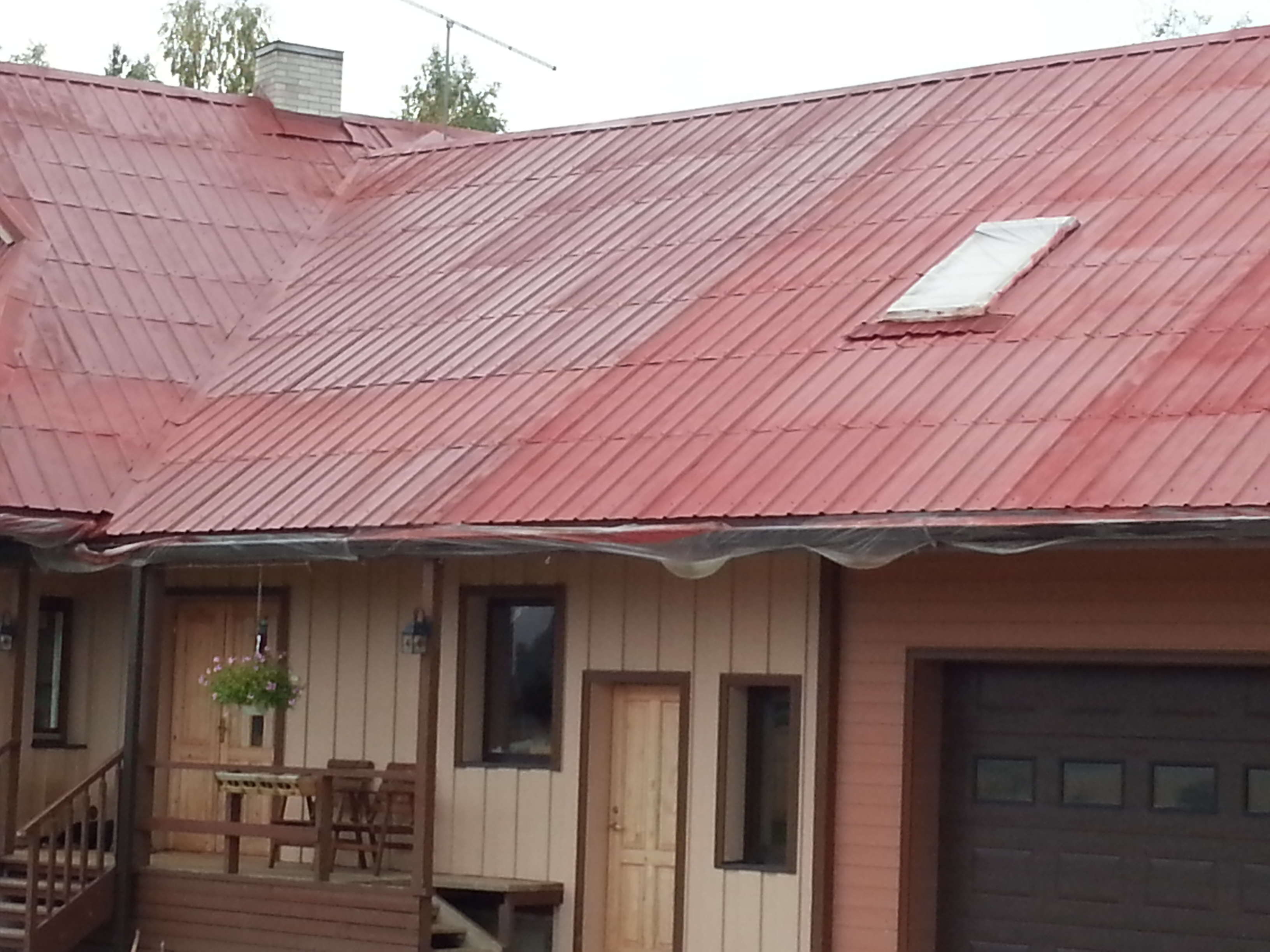 Katuse üldpind on 410 m2. Trapetsprofiilplekk , väikesed plaadid. Üks kord ebaõnnestunult krunditud 2013a.