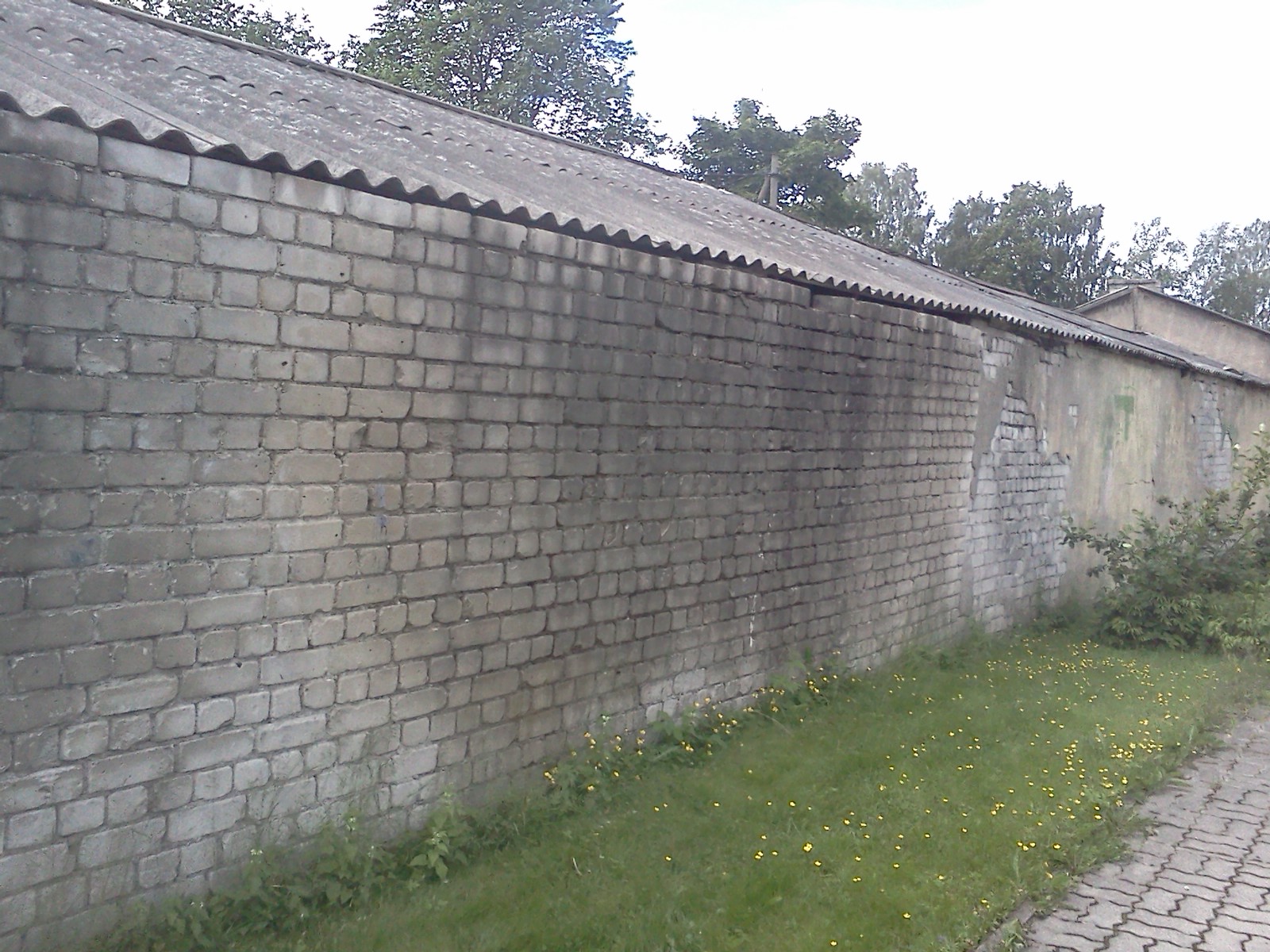 Silikaattellistest laotud kuuri tagasein on osaliselt murenenud ja väljapoole ära vajunud.