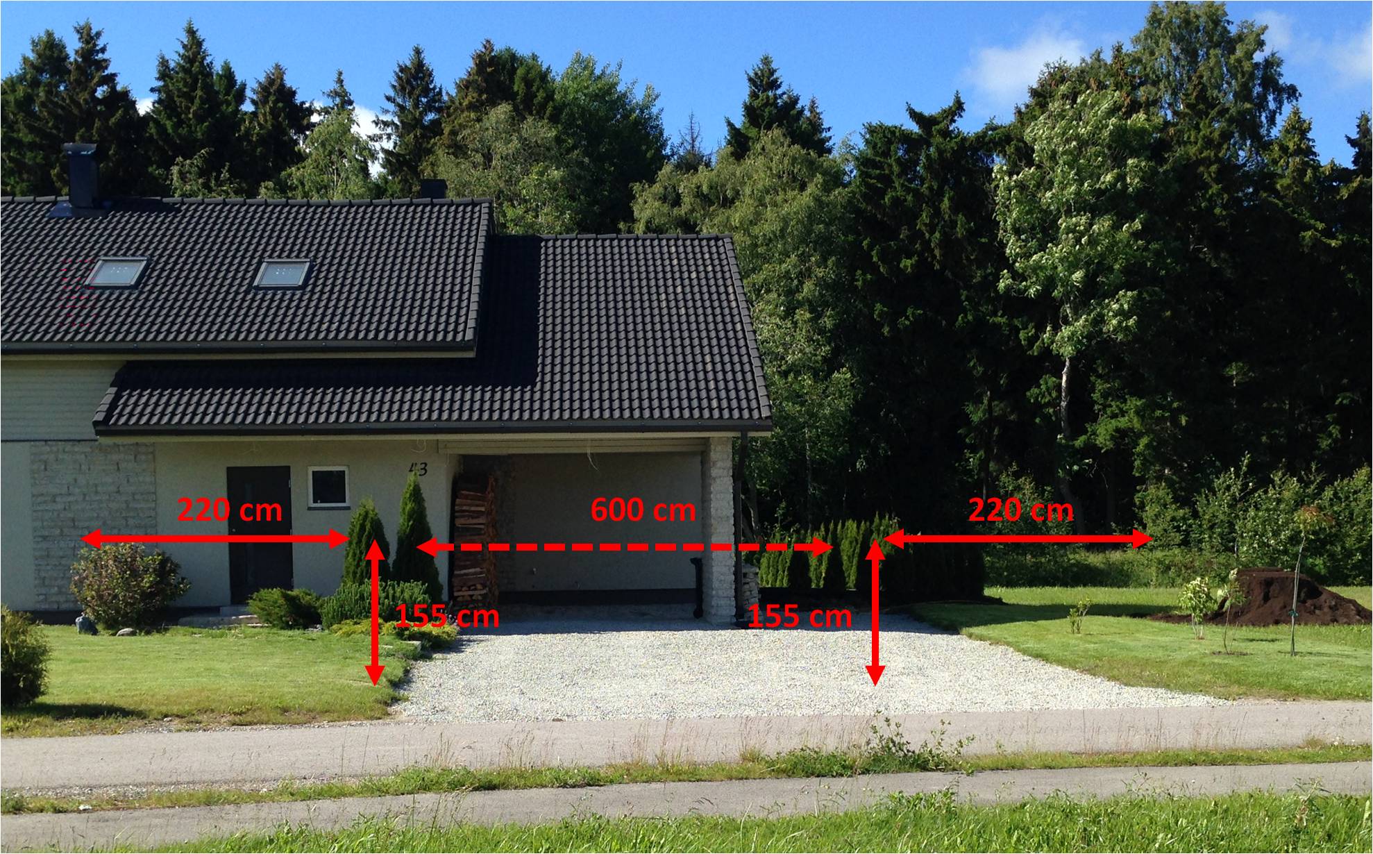 Lisatud materjalid.jpg pildil on näha maja nurgas olev post ja aiapostid peaksid tulema sama sugused. Lisaks on pildil näha väike kogus kive, mis saab ära kasutada.