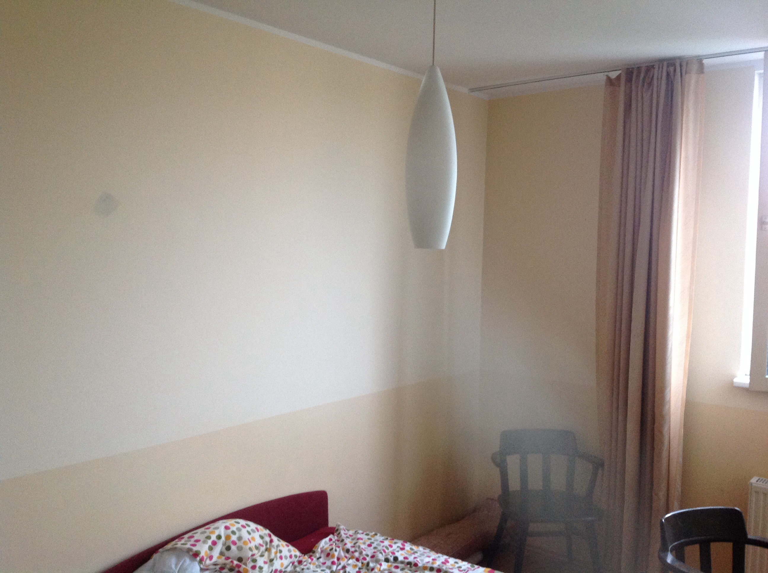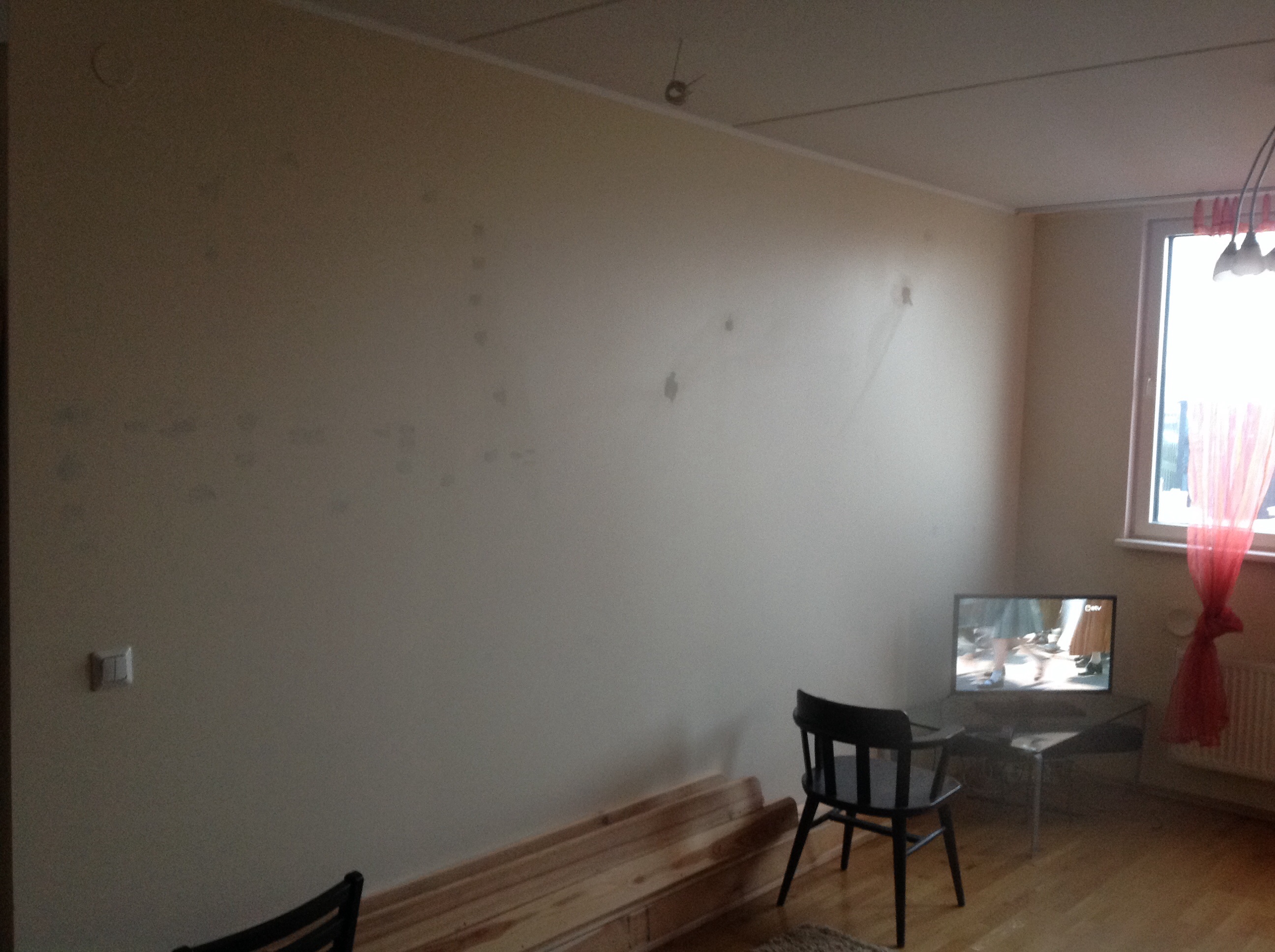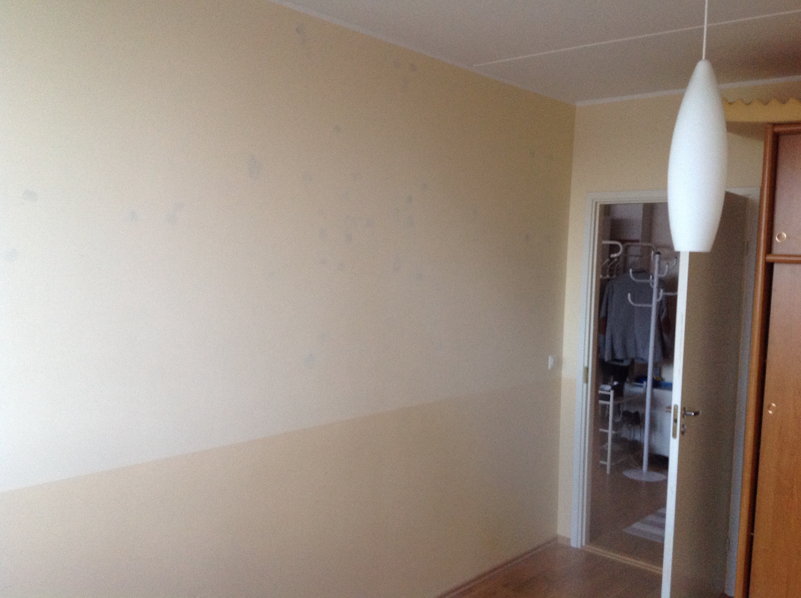 Suuremad seinad 2.60x4 .70(3 seina), 2.60x 6.30(1sein), 1.80x 2.6 + vaiksemad nurgad, akna alused, ustega seinad. Arvan et värvitavat pinda ca 70 ruutu. Seinad on sirged, eelnevalt juba värvitud olnud. Maja ehitatud 2007.