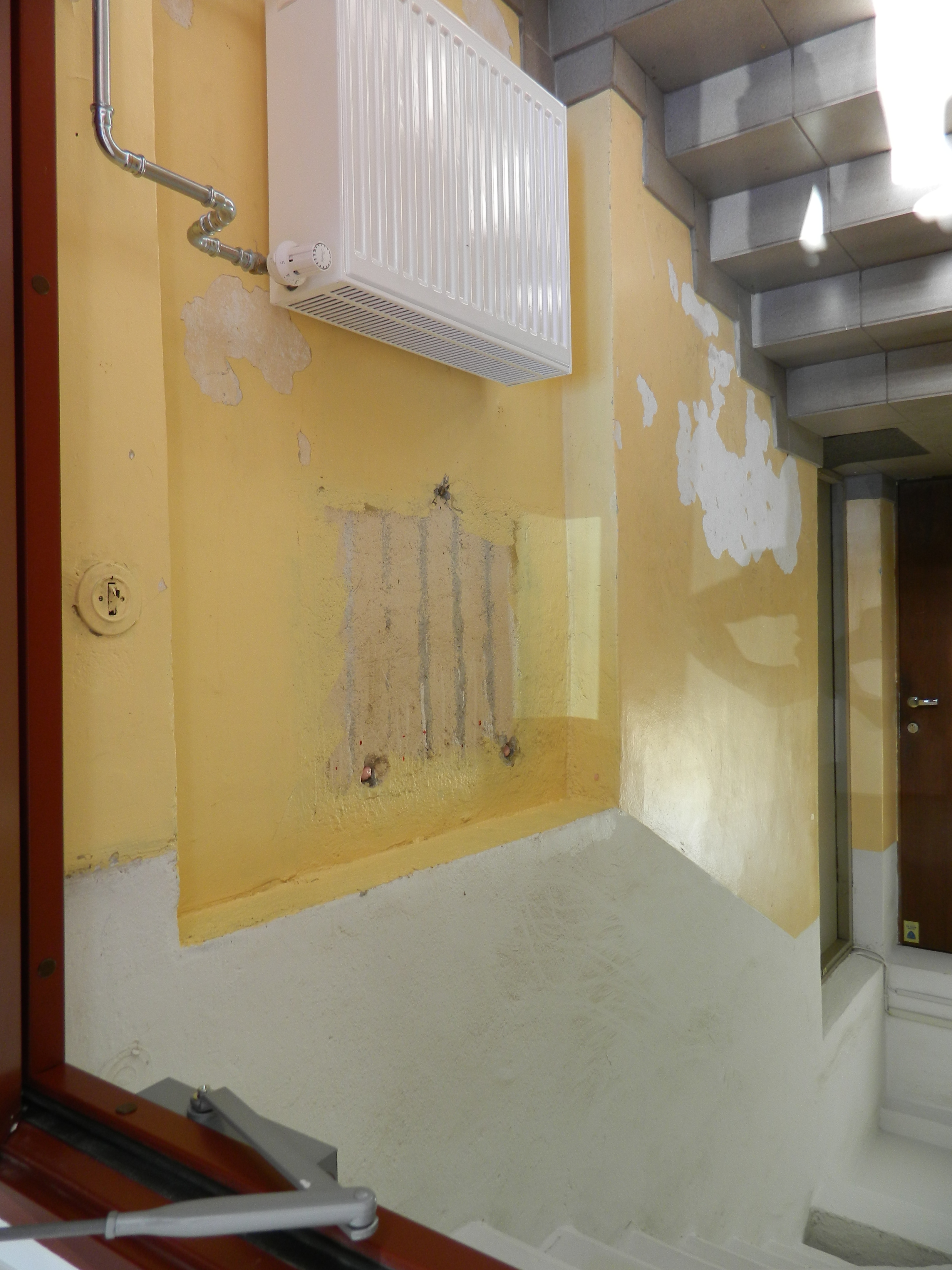 Korterelamu trepikodade seinte viimistlemine. Tegemist on kahe trepikojaga kolme korruselise majaga. Seinte pind on kokku ca 160 m2. Seinad on praegu värvitud horisontaalselt kahe erinava värviga. Võib pakkuda ka teistsuguseid lahendusi. Vana lahtine värvi kiht tuleb eemaldada, sein pahteldada ja värvida. Mõni üksik auk seinas vajab natuke krohvi. Pahteldatavat seina on umbes 30 - 40 m2. Ülejäänud sein vajab vaid üle värvimist.