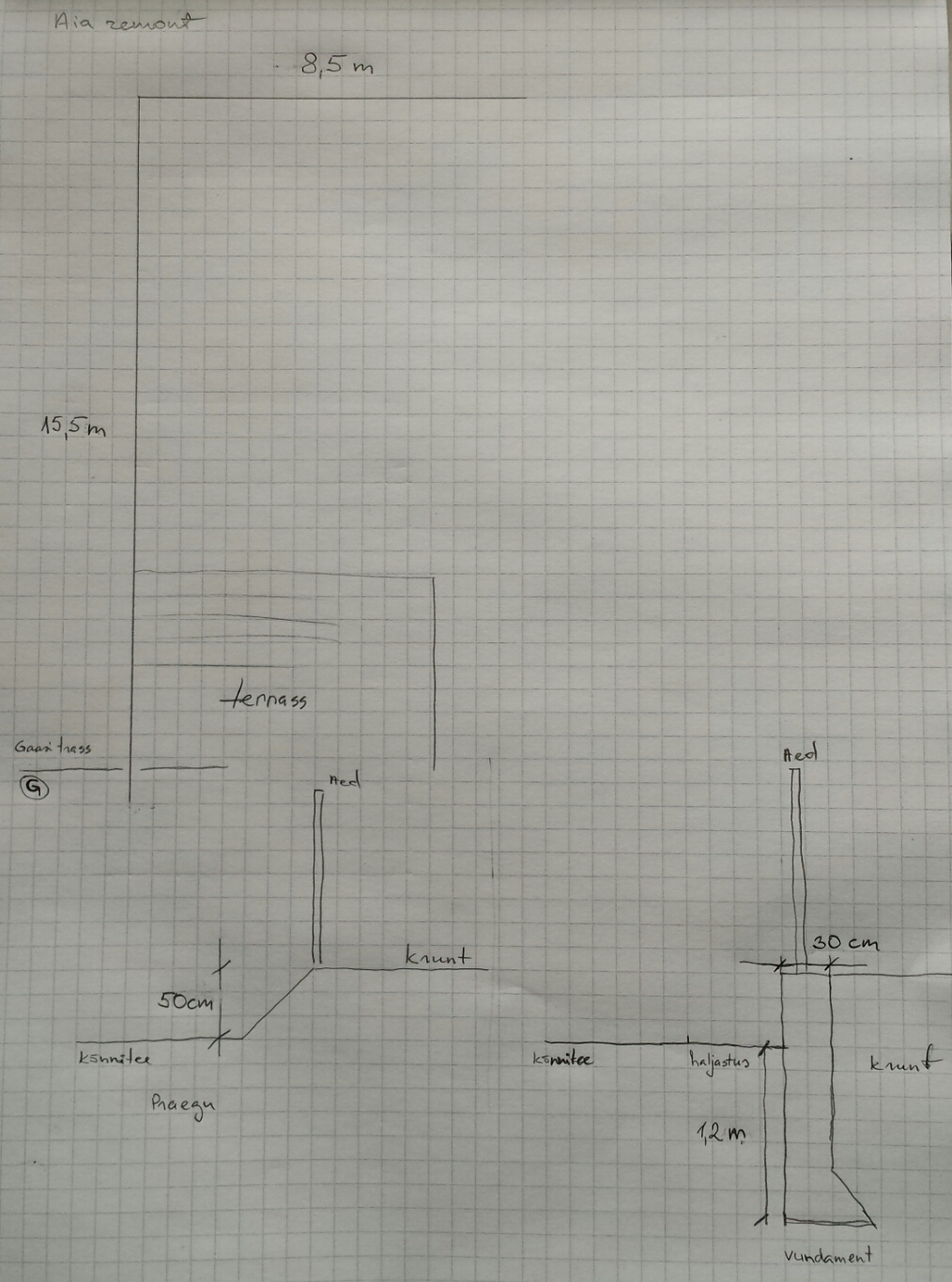 Uuele aiale vundamendi tegemine (joonisel on kirjas mõõdud ja gaasitrassi asukoht).