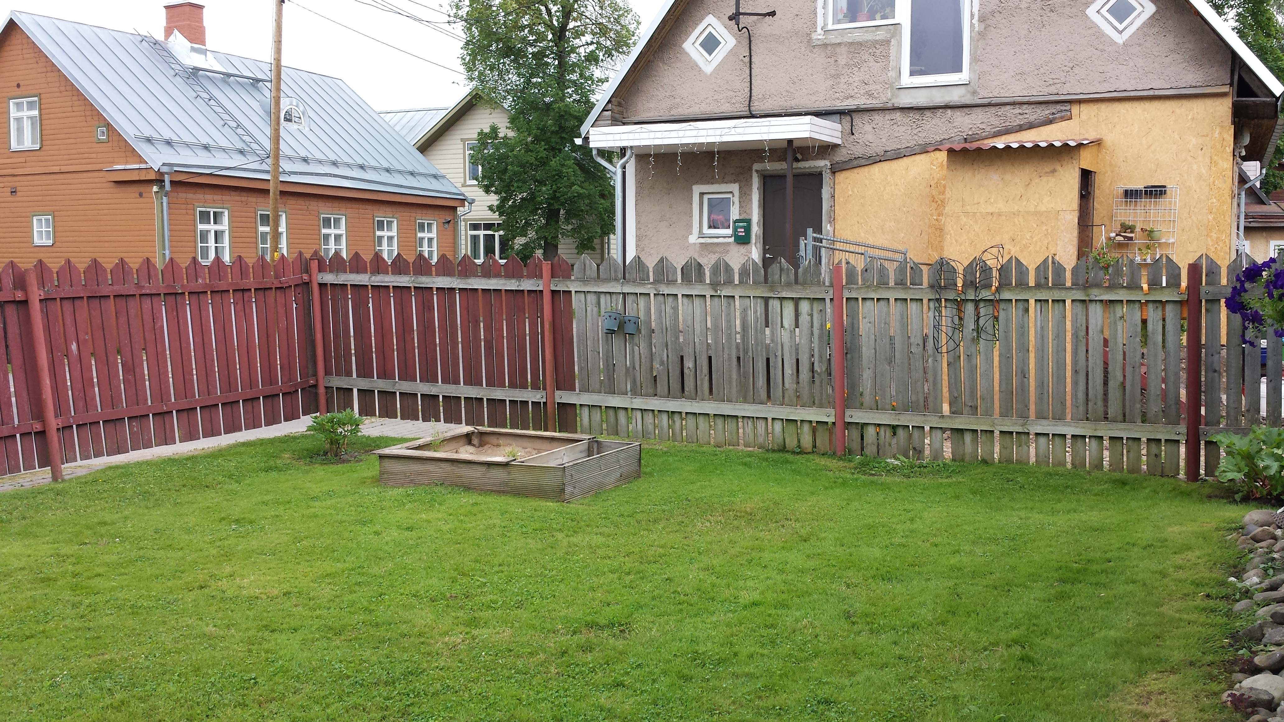 Uue aia ehitamine. Aia postid metallist, aed puidust (värvitud tellija poolt valitud värvitooniga) püstised lipid. Aia üleval ääres on 2 iluliistu terve aia ulatuses.