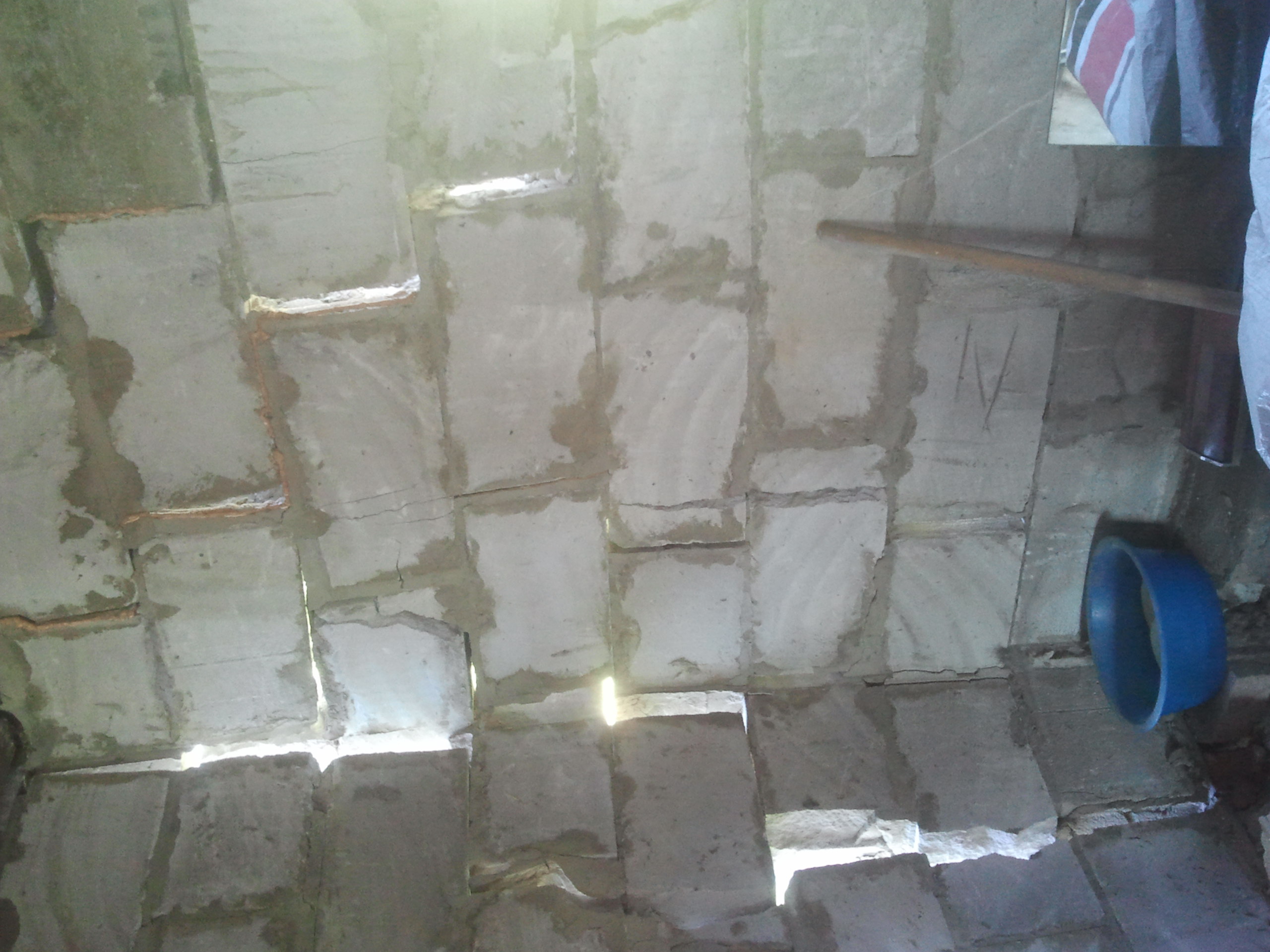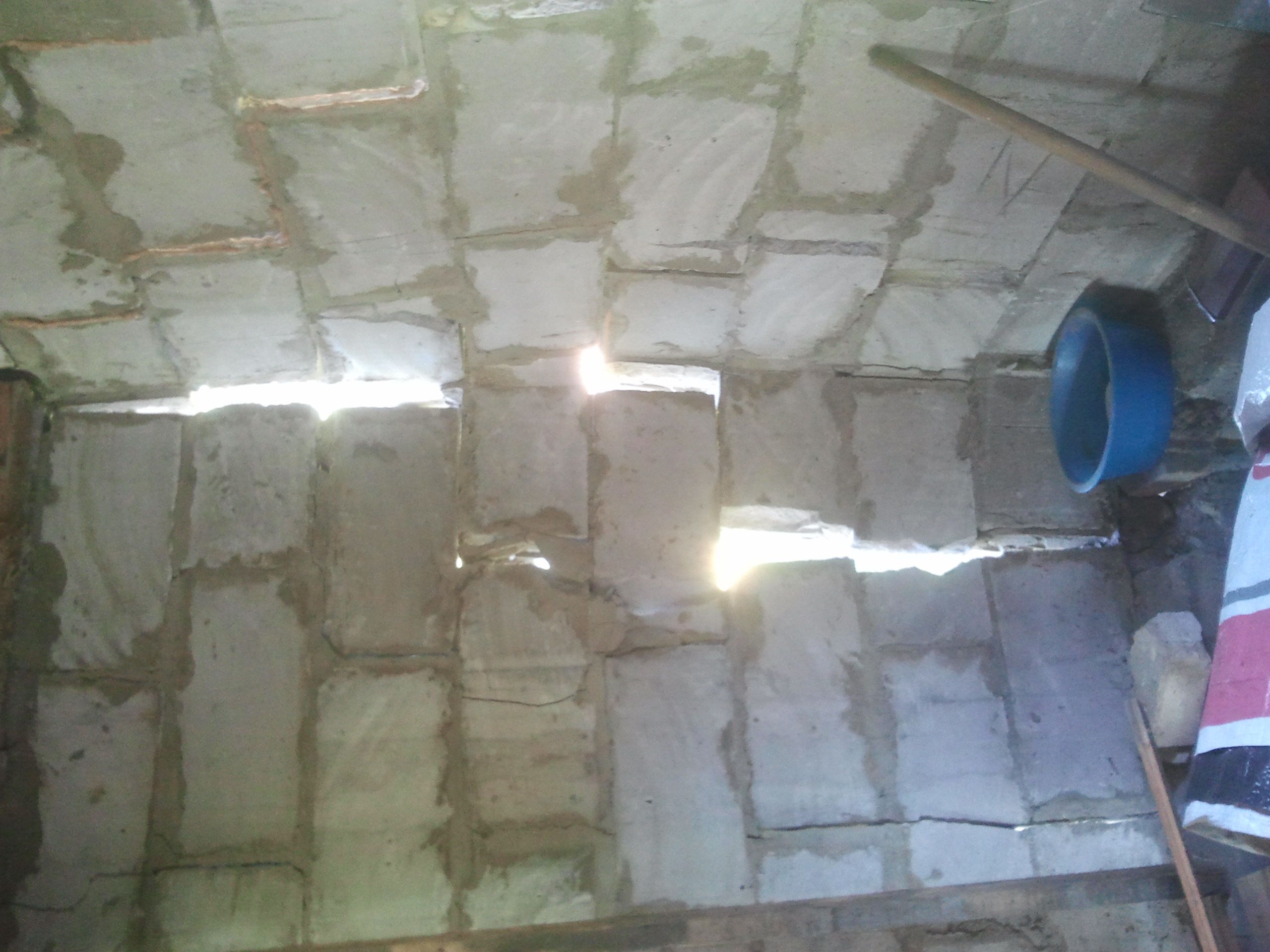 Külma kahjustuse tõttu on maja ühe nurga seinad osaliselt välja kummunud. Sein on laotud tuhaplokist. Tuleb maja sees toestada lae talad (4 tala), kahjustunud seina osas kõigepealt plokid eemaldada, maja nurga vundament korrastada ja sein üles laduda.