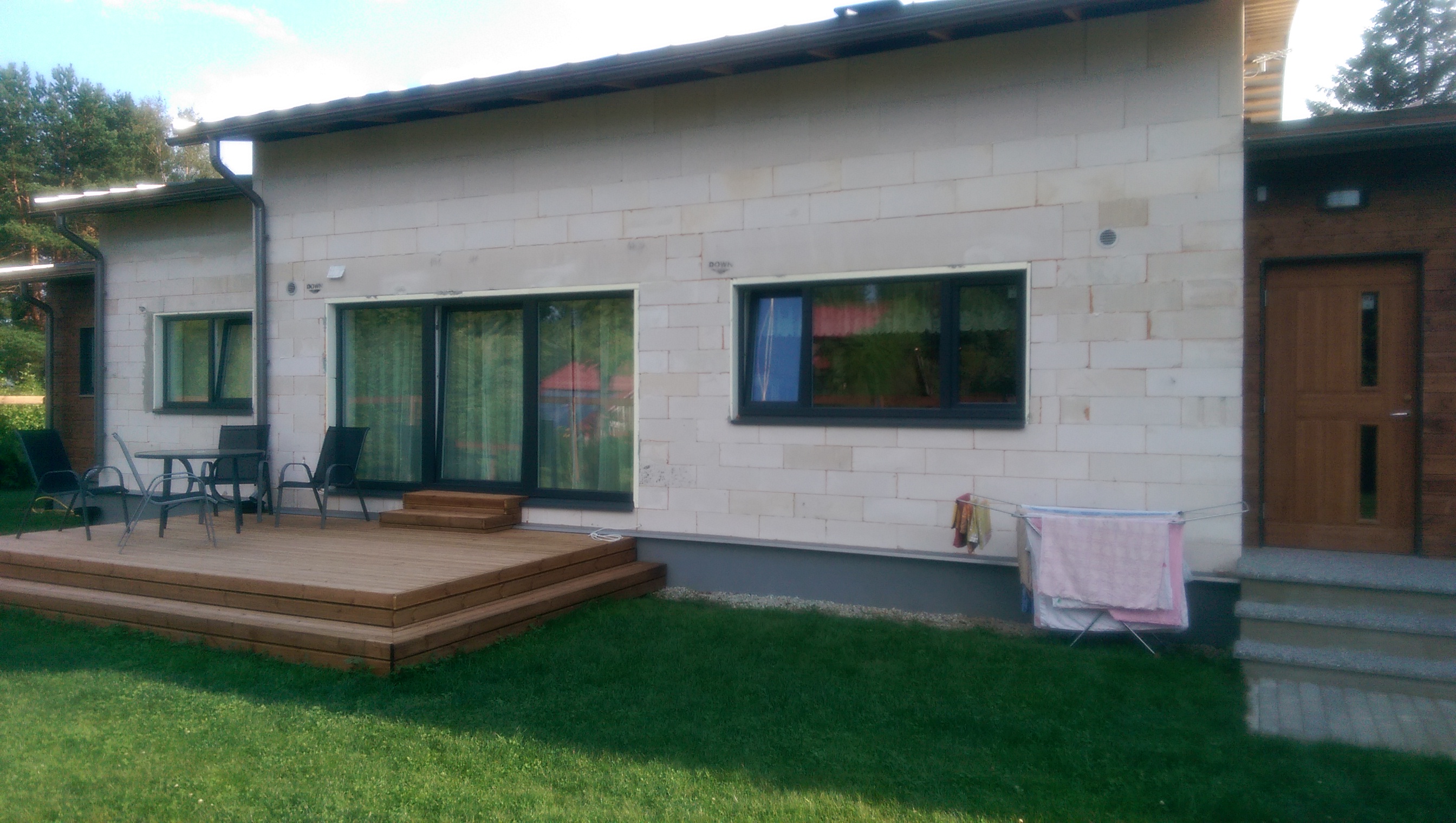 Eramaja fassaaditööd: Aeroc Ecoterm 375 plokksein vaja viimistleda võrgu ja krohviga, eraldi soojustust ei tule. Värvus valge, õrna tooniga. Pindala 110 m2, lisaks aknad 18m2.