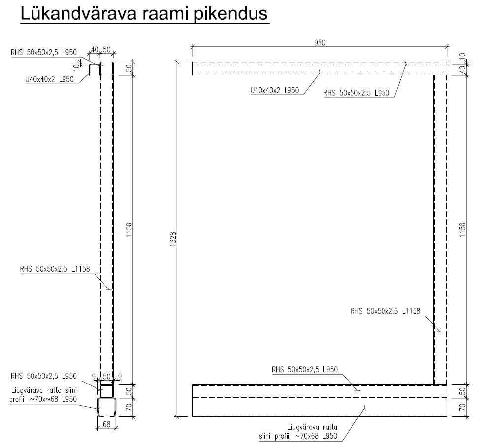 Auto lükandväravale on vaja valmistada ja lisada pikendus 95cm. Pildid olemasolevast olukorrast ja vajalikust lisaraamist on lisatud.