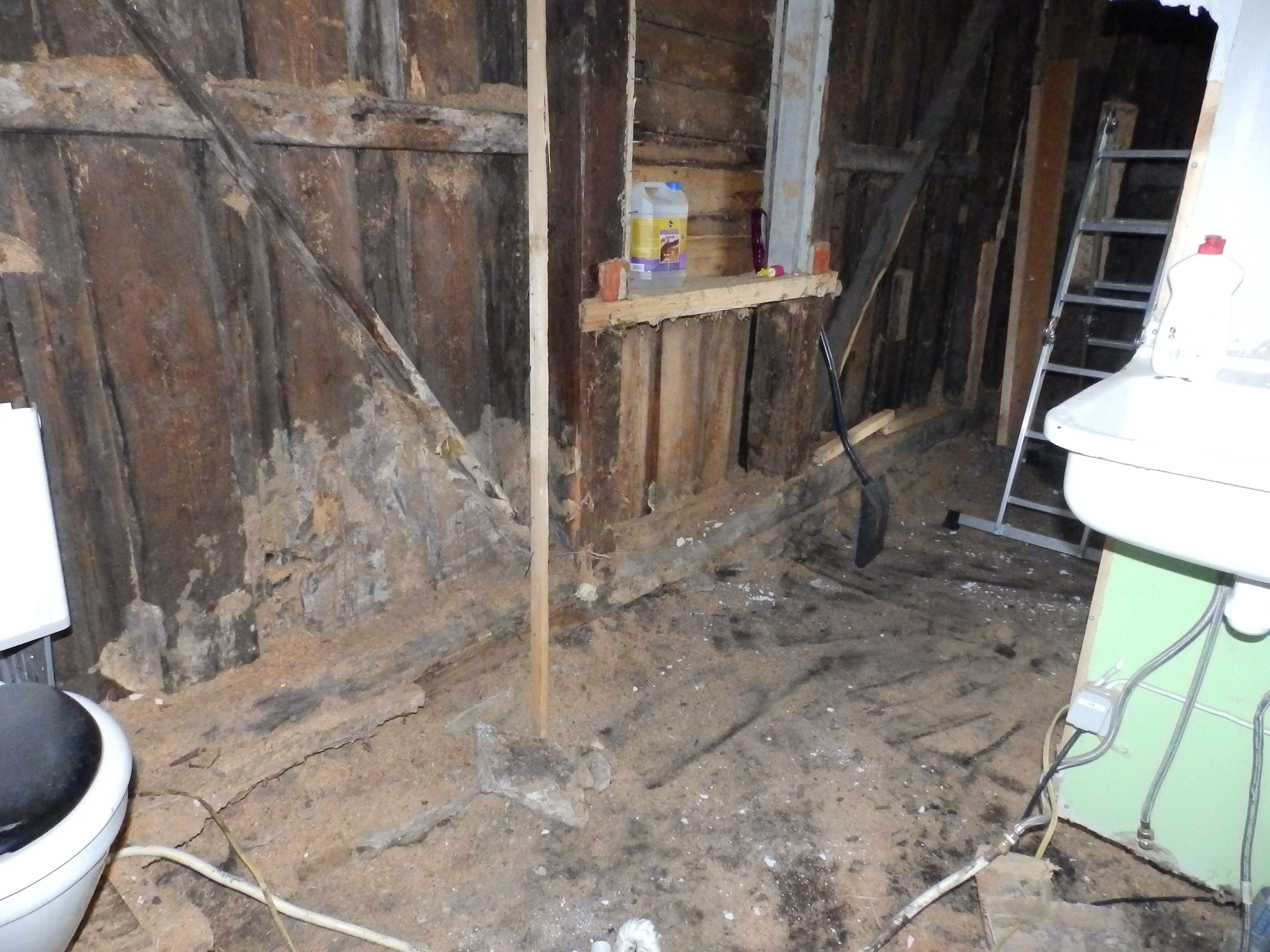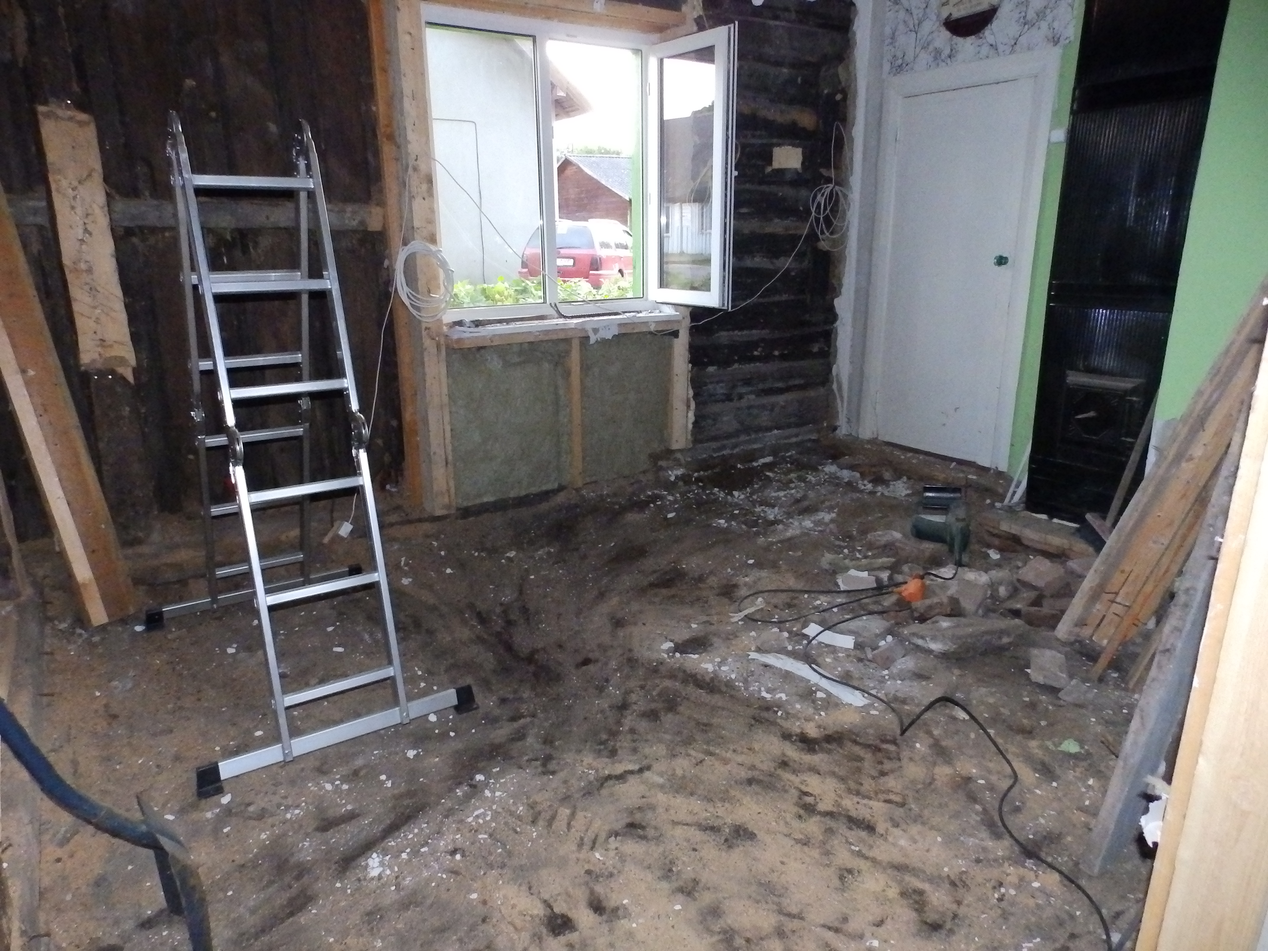Tööks on kogu põrand üles võtta ja pinnast välja võtta, vana põranda talad on tehtud mulla peale. Sissetulev vesi ja kanalisatsioon suuri ümbertõstmisi ei vaja, kuid pisut korrigeerimist ehk siiski-sissetulev vesi tuua välisseina äärest kaugemale.