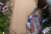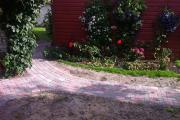 Enamuses äärekivi pandud, 10kond meetrit ehk juurde tarvis ühte äärde panna. Killustiku põhi tehtud, ainult liivapõhi ja kivid maha panna. Tegu pruuni ruduse munga kiviga.