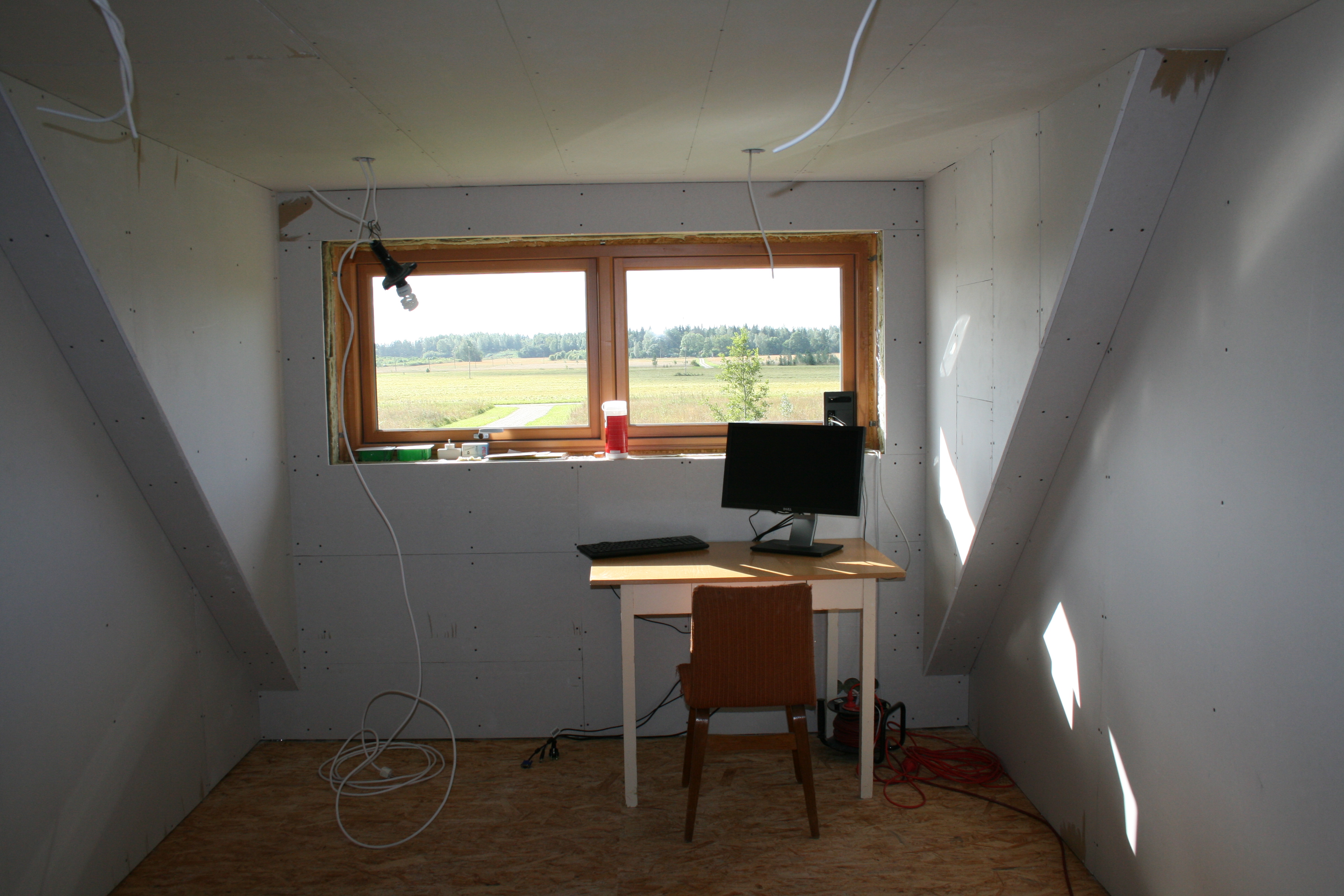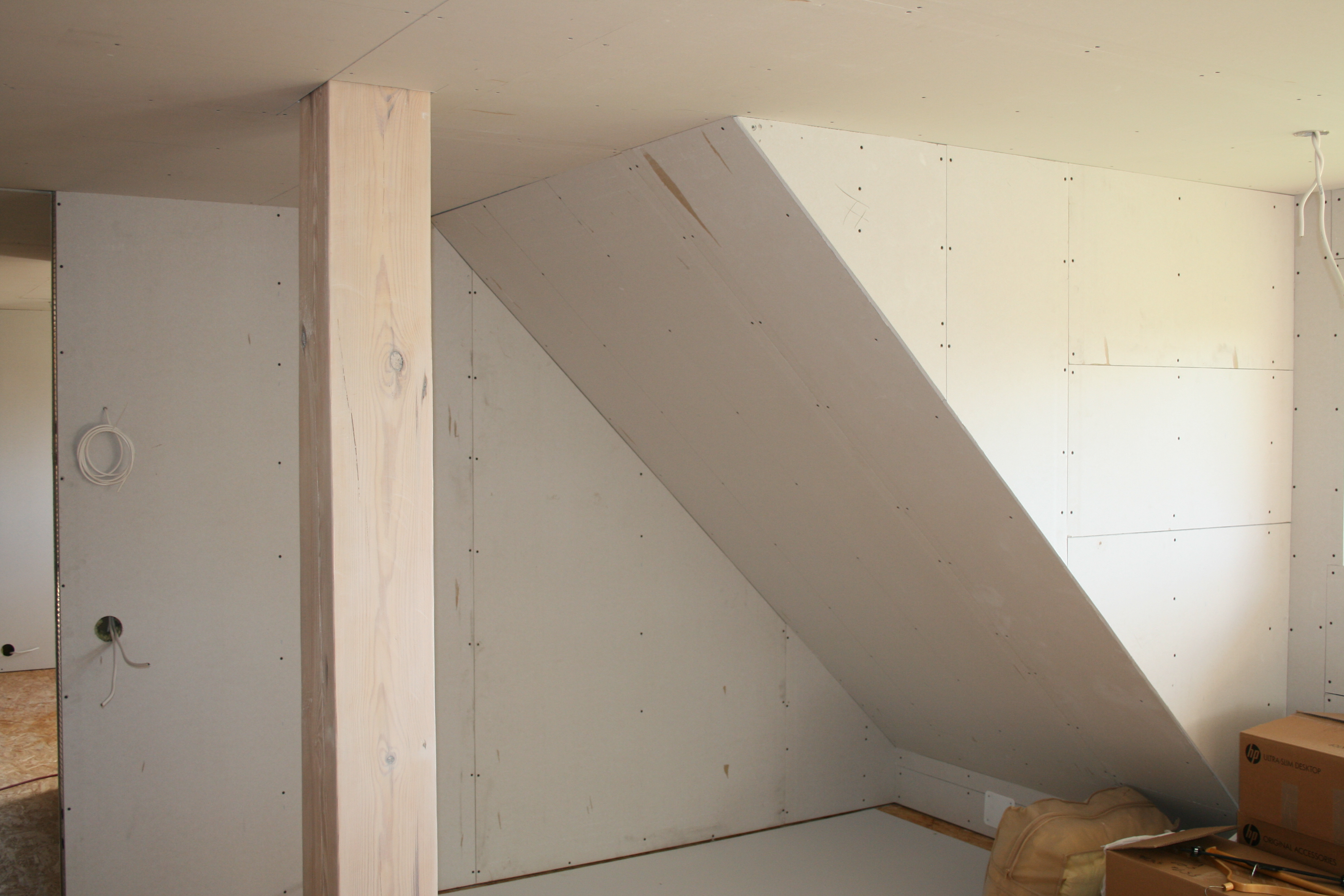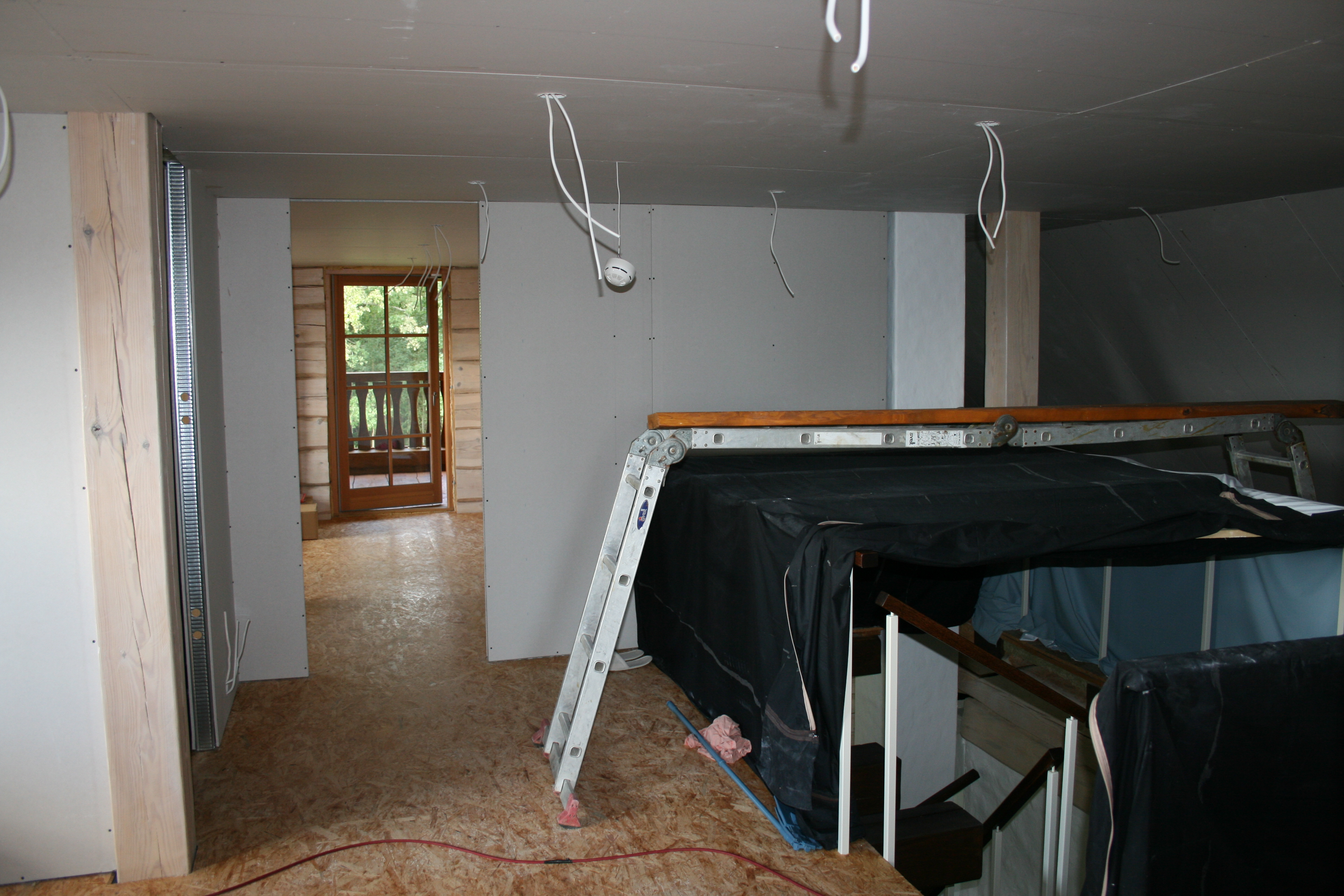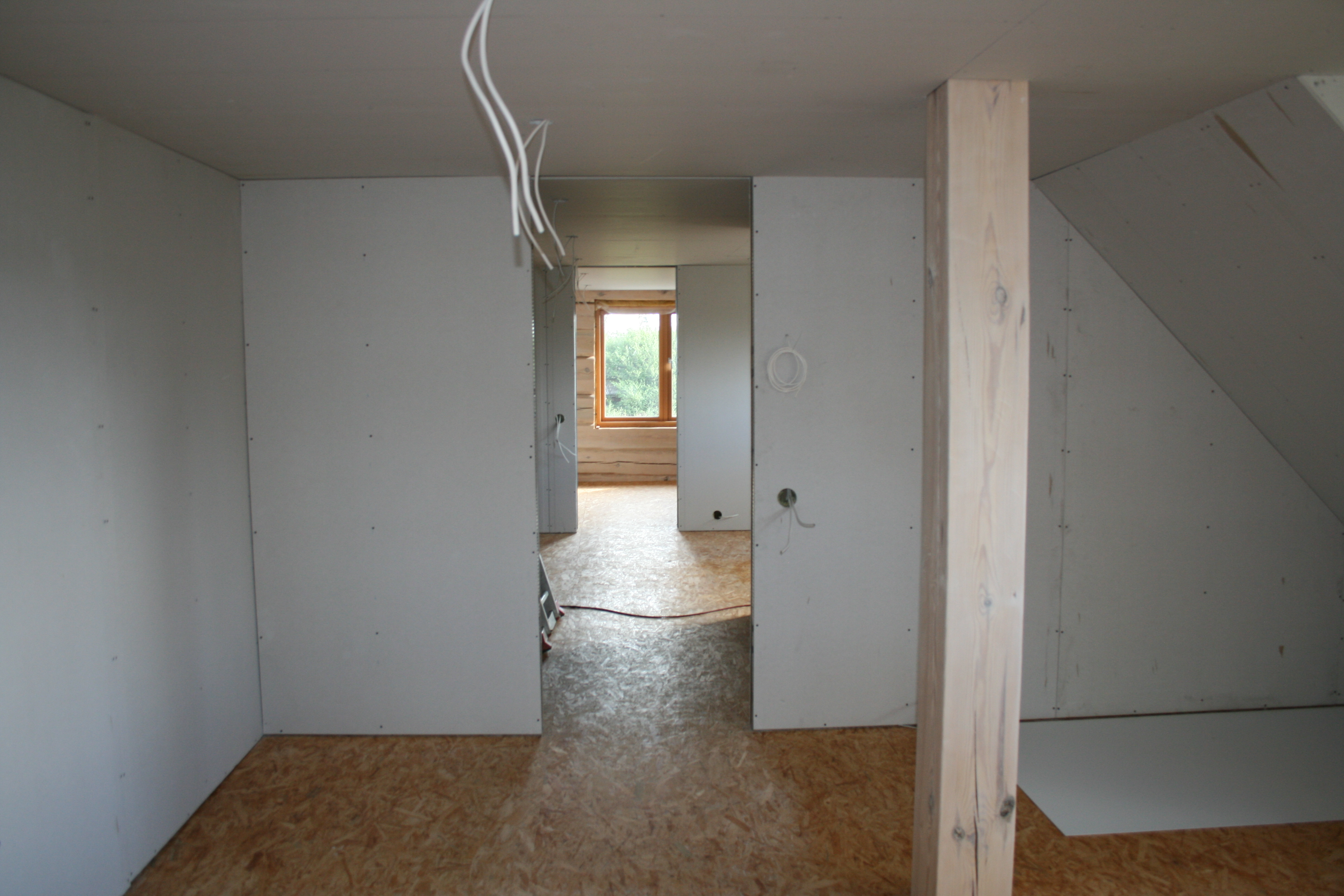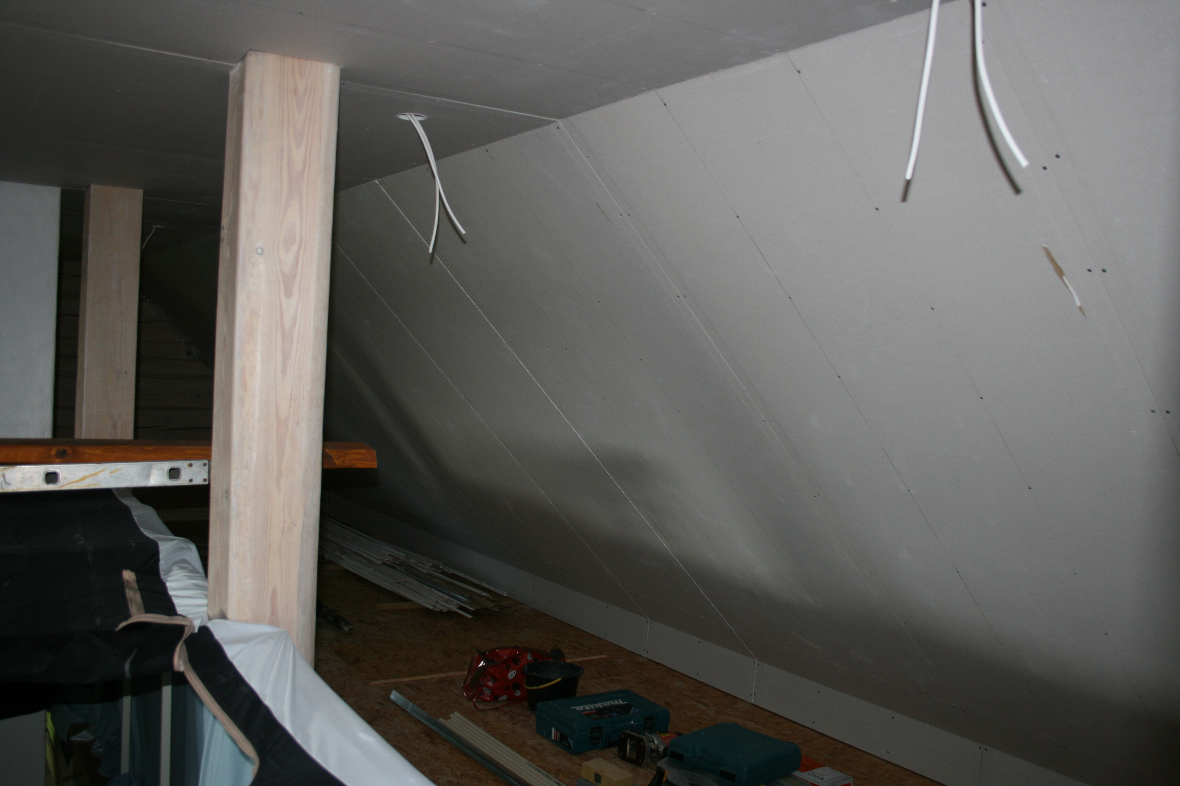 Eramaja teise korruse kips lagede/kaldlagede ja seinte täispahteldus, lihvimine ning kruntvärv.