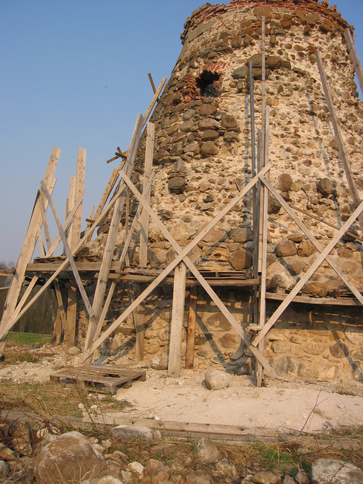 Veskimüüride taastamine maakividega, kivid kohapeal olemas. Katuse ehitus.