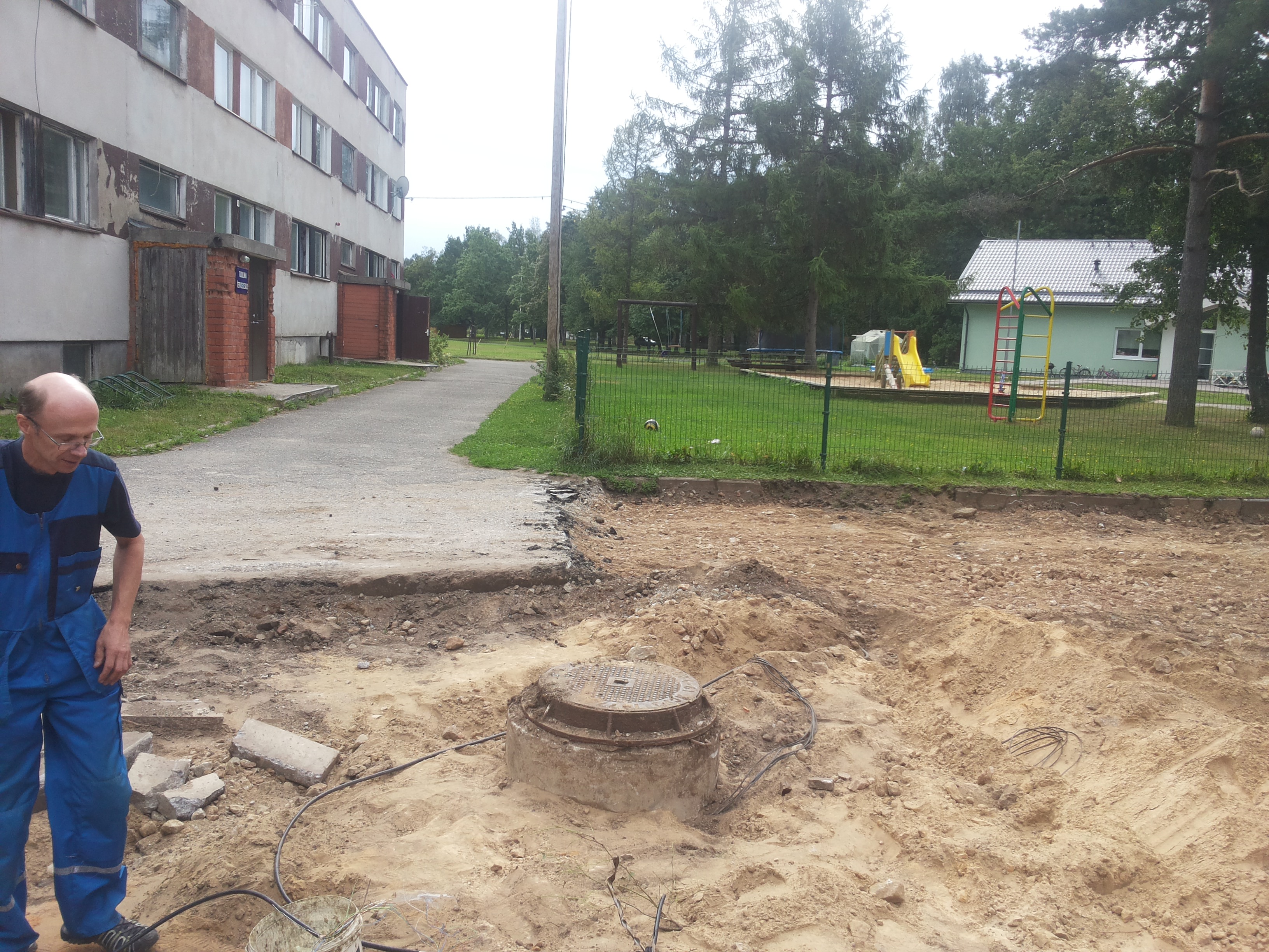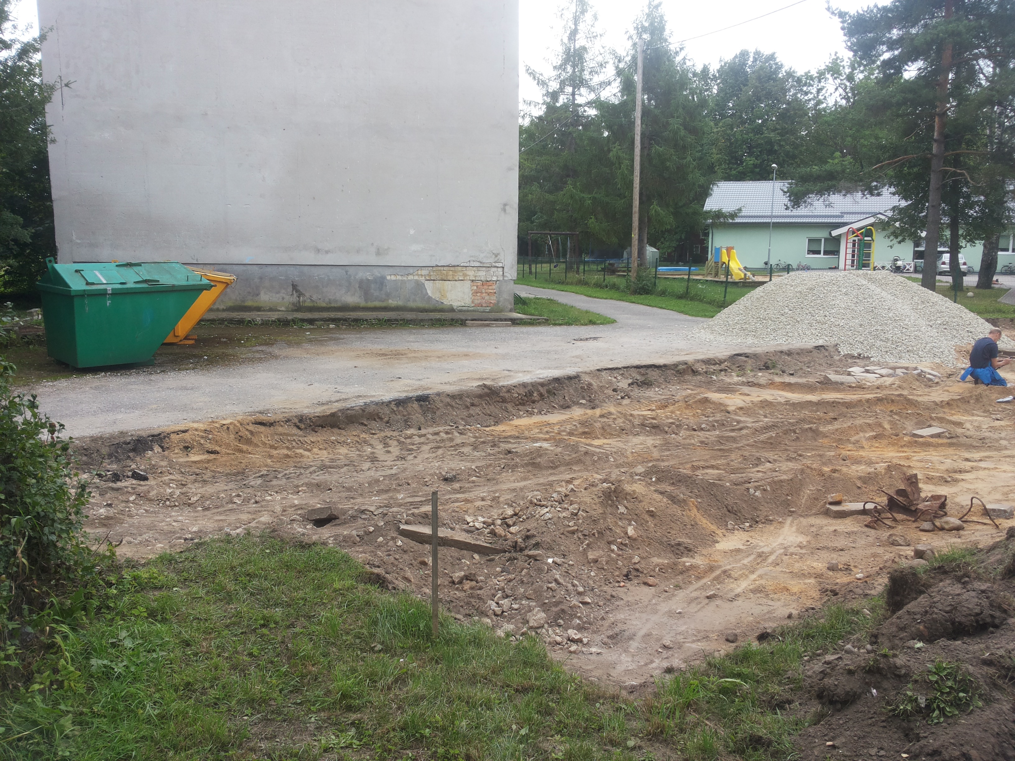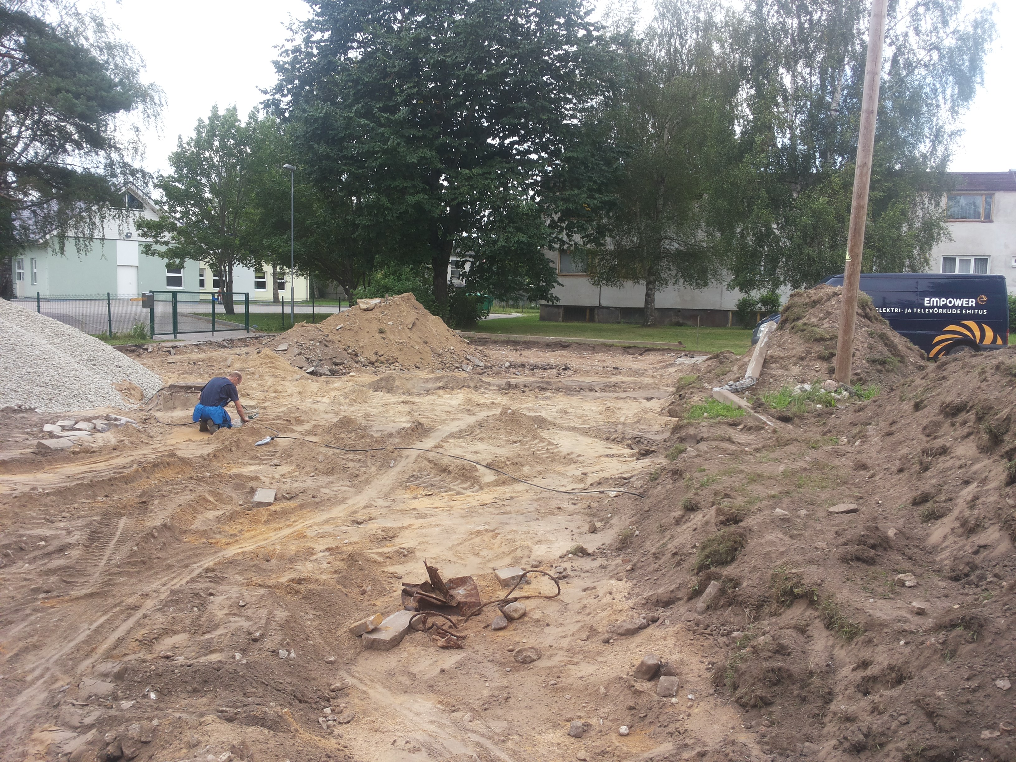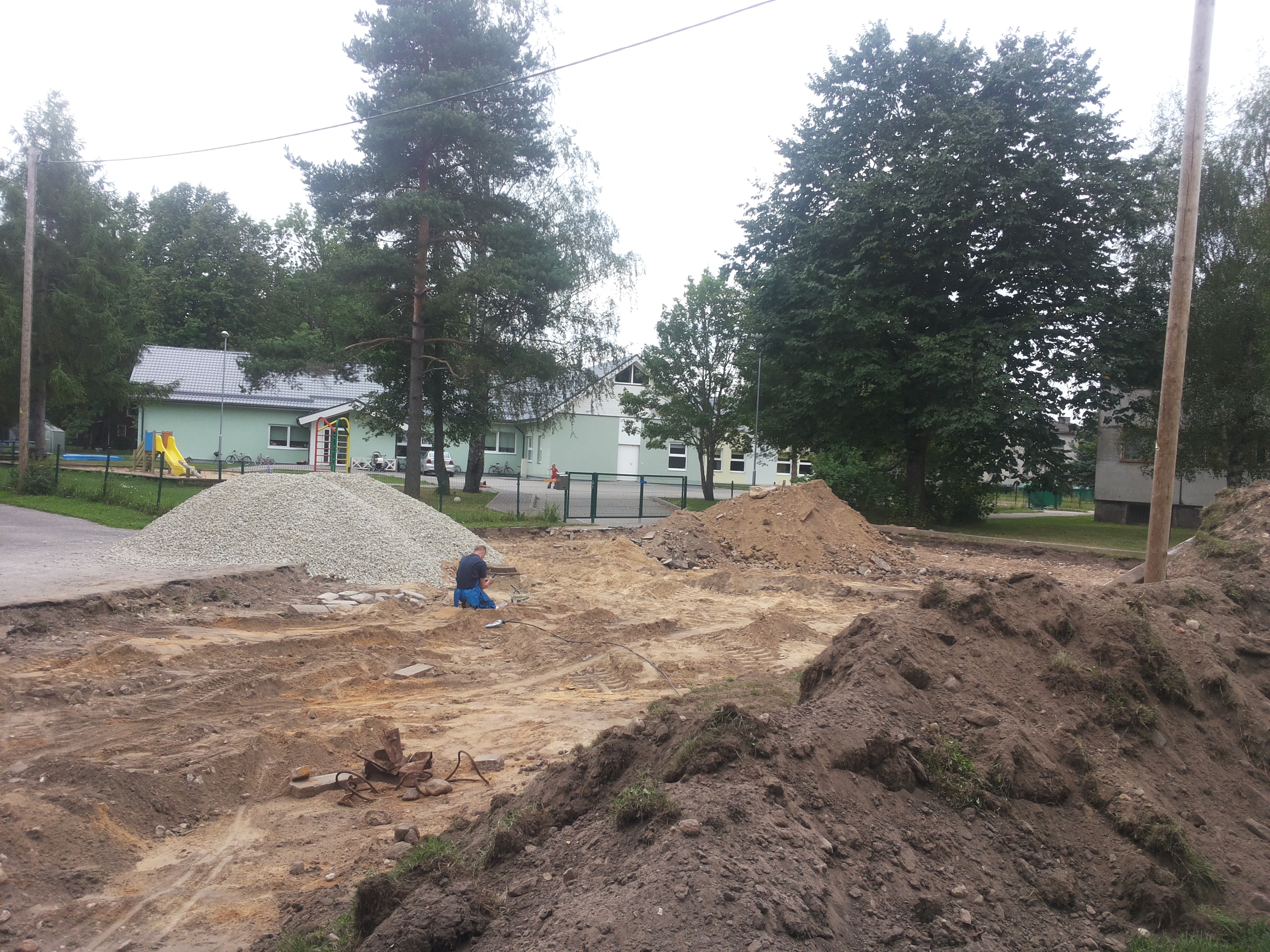Tudulinna alevikus Ida-Virumaal on vaja välja ehitada 350 m2 parkla ja sissesõidutee. Eeltööd on osaliselt tehtud - pehme pinnas ja muld on välja kaevatud ja minema viidud ja täidetud asfalti ja killustiku seguga. Samuti on kohapeal olemas juba 16x32 killustik aluspinna täitmiseks ja tasandamiseks. Parkla pealispind tuleb mungakivist - tellijal endal on olemas 4 alust pruuni mungakivi, millest tuleb parkimise eraldusjooned. Töö teostajalt oodatakse 300 m2 halli mungakivi, kivide alust ja vahelist liiva, tööde teostamist (ka vibrotalda), st alustööd ja kivi paigaldus, samuti äärekivid. Võimalik on kasutada töö tellija tehnikat abitöödeks, läheb tellija kuludesse. Platsil asub üks sidekaev, mis läheb likvideerimisele ja üks kanalisatsiooni kaev, mis jääb ja mida on vaja tõsta kuskil 20 cm.