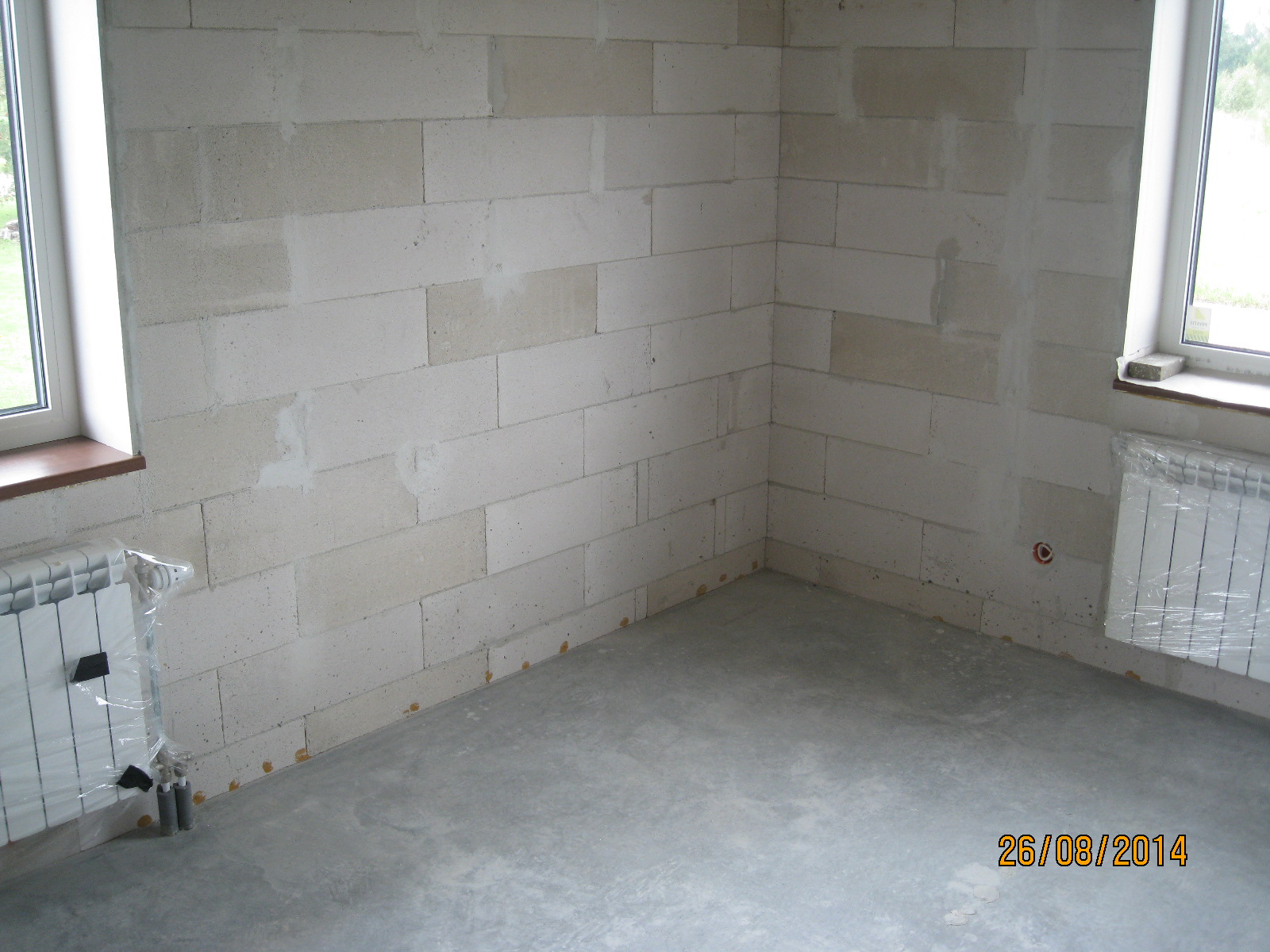 Eramaja 1-korruseline. Aeroc seinad (laotud sirgelt). Laed ja paled on kipsplaadist.