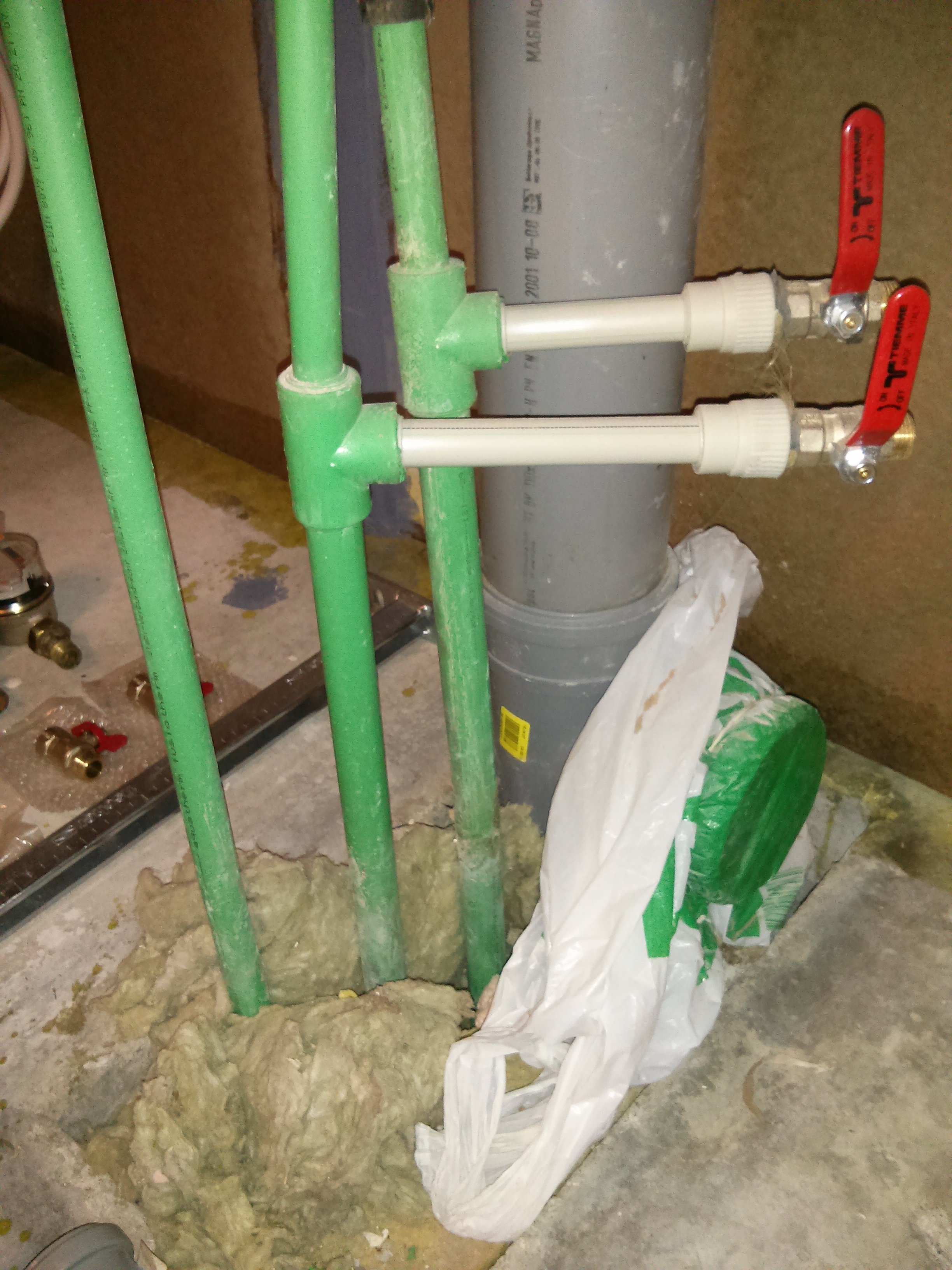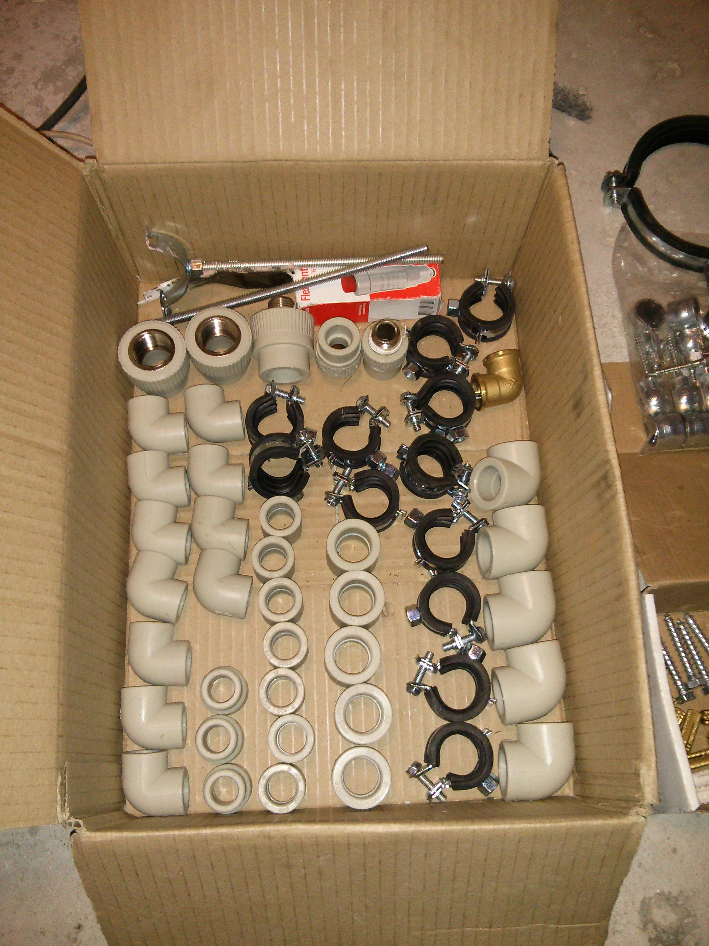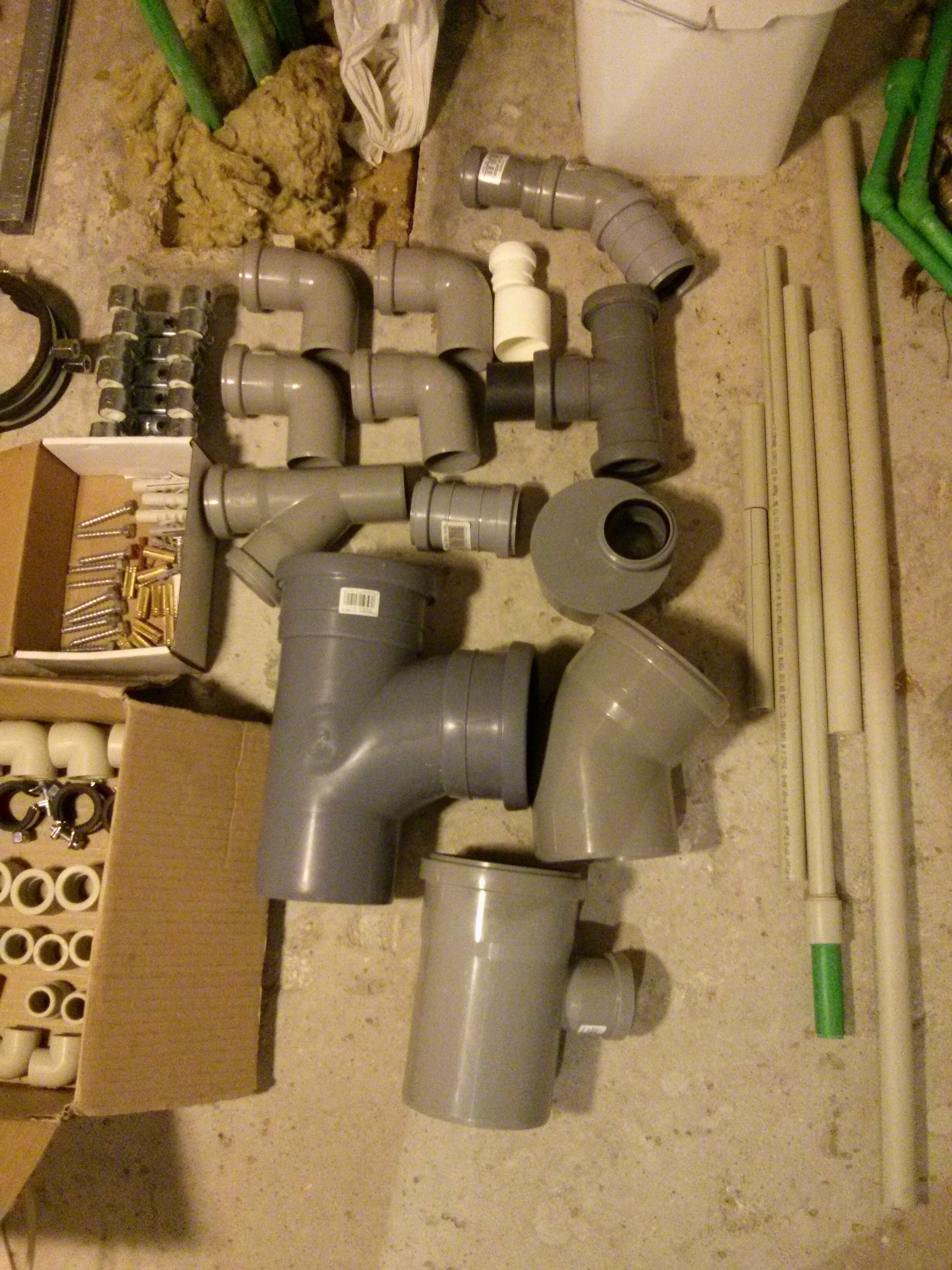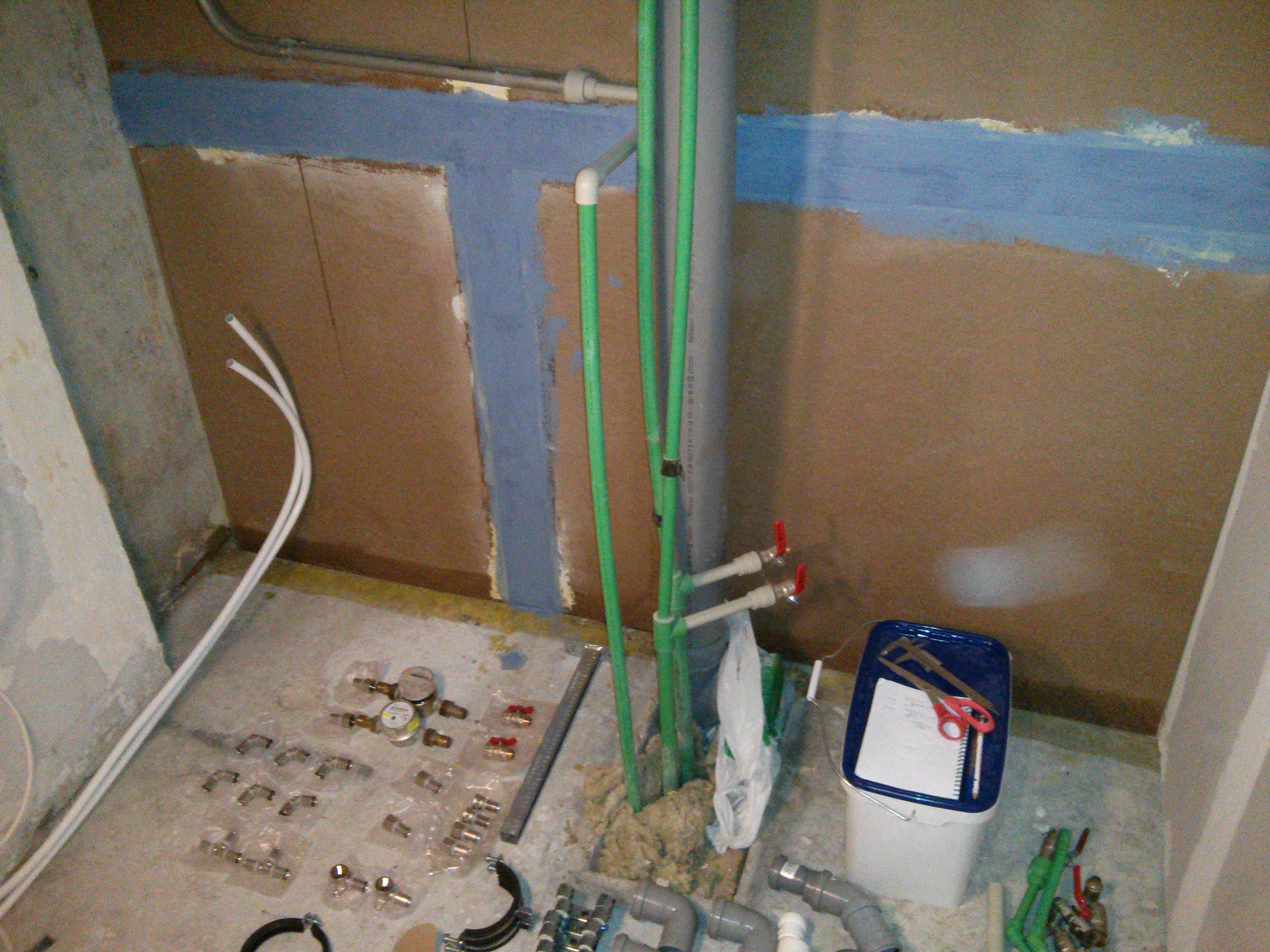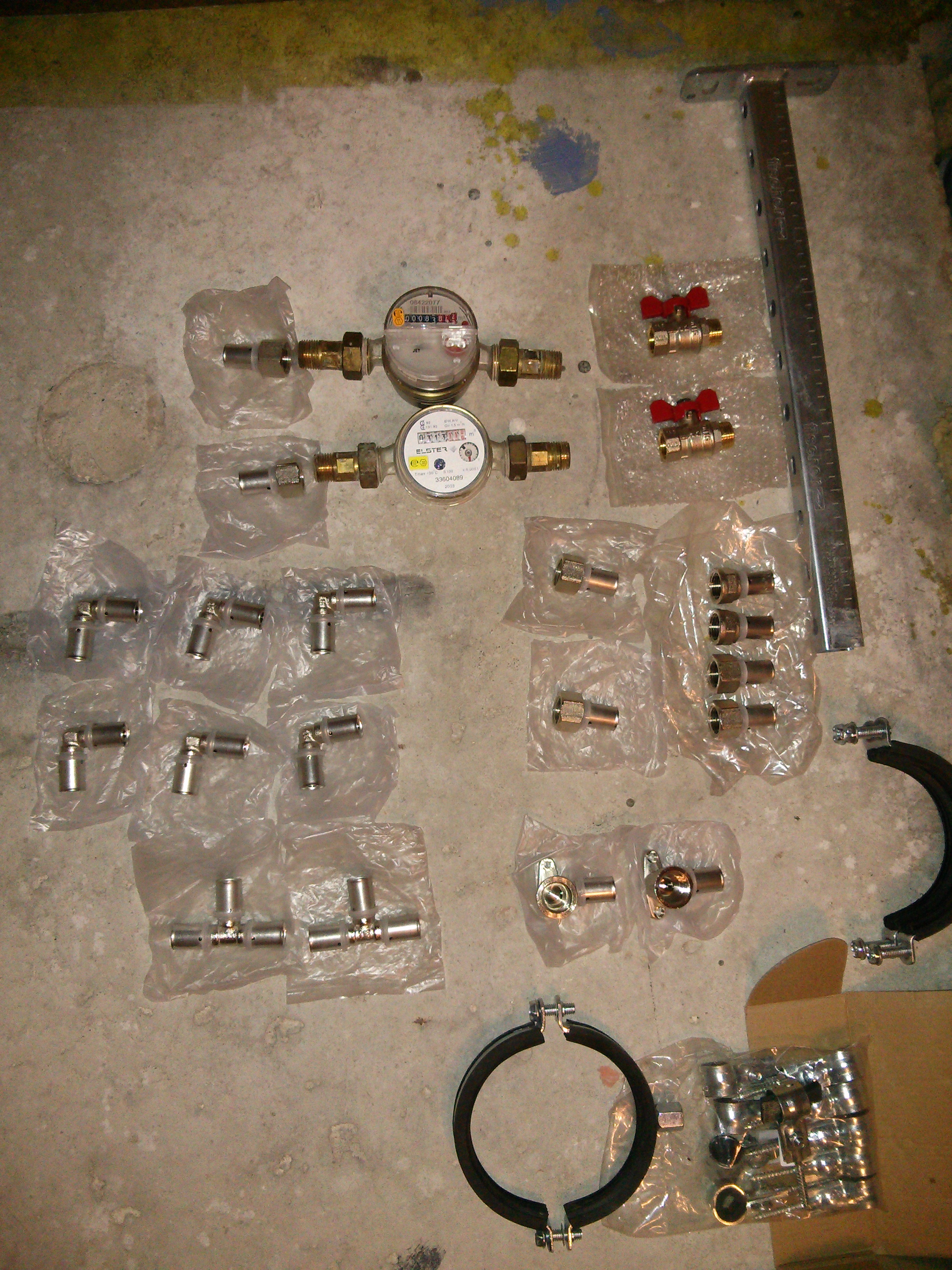 Eelmisest santehnikust juba olemas enamus materjale mis ka piltidel välja toodud, lisamaterjalid hangib vastavalt vajadusele töö ajal. Pildil nähtav roheline-valge ristmik kuulkraanideni on kiiruga tehtud parandus ja vajab suure tõenäosusega välja vahetamist - seal originaalis olev peenem toru murdus painutamise peale ära - valged torud on sulatatud auku mis väiksem kui selle toru jaoks peab olema. See on probleemne koht kuna ei ülevalt, ega alt pole toru varuks vaid jookseb edasi püstikus. Hanke võitja vaatab üle ja otsustab kas jääb see või proovib teha parema lahenduse.