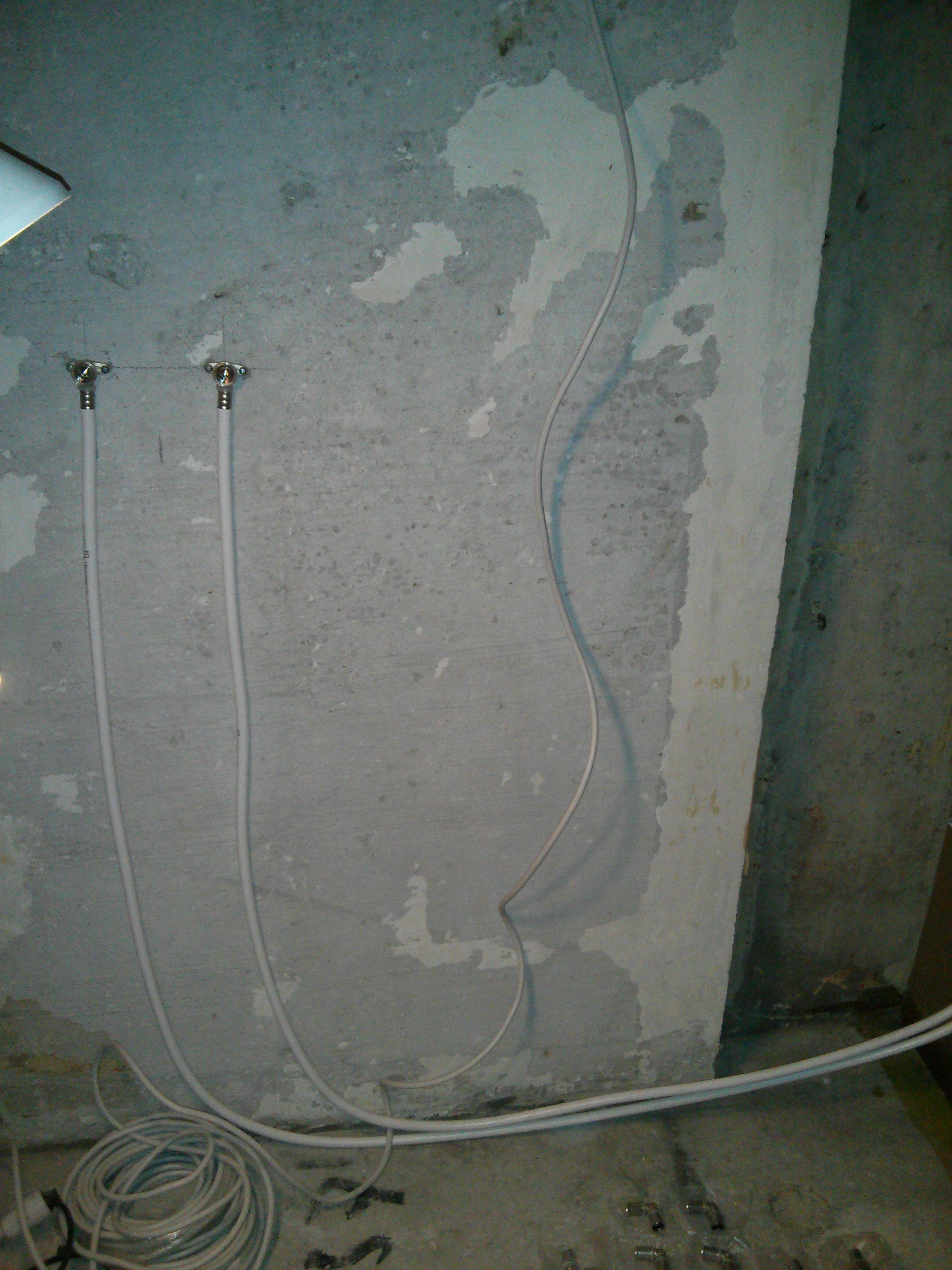 Töö sisu: Püstikust tuleb vedada torud seina kuhu kinnitada veemõõtjad, sealt edasi jagunevad aluplex torud kaheks: esmalt viia torud vasakule nurka kuhu tuleb 45 kraadise nurgaga WC pott (seda pole vaja ühendada kuna põrand valamata) ning edasi ühendub juba vasakus seinas oleva dushinurga torud (juba paigaldatud); teised torud lähevad peale veemõõtjat paremale kuhu tuleb ühendus pesumasina jaoks ning edasi läbi paremapoolse kipsseina kööki. Lisaks siis ka äravool eelpool kirjeldatule (WC, dushinurk, pesumasin, köök). Kööki ainult torude otsad - rohkem selle hanke vaates seal tööd pole. Lõpetuseks paigaldada seina ka raam kuhu külge püstiku torud kinnitada.