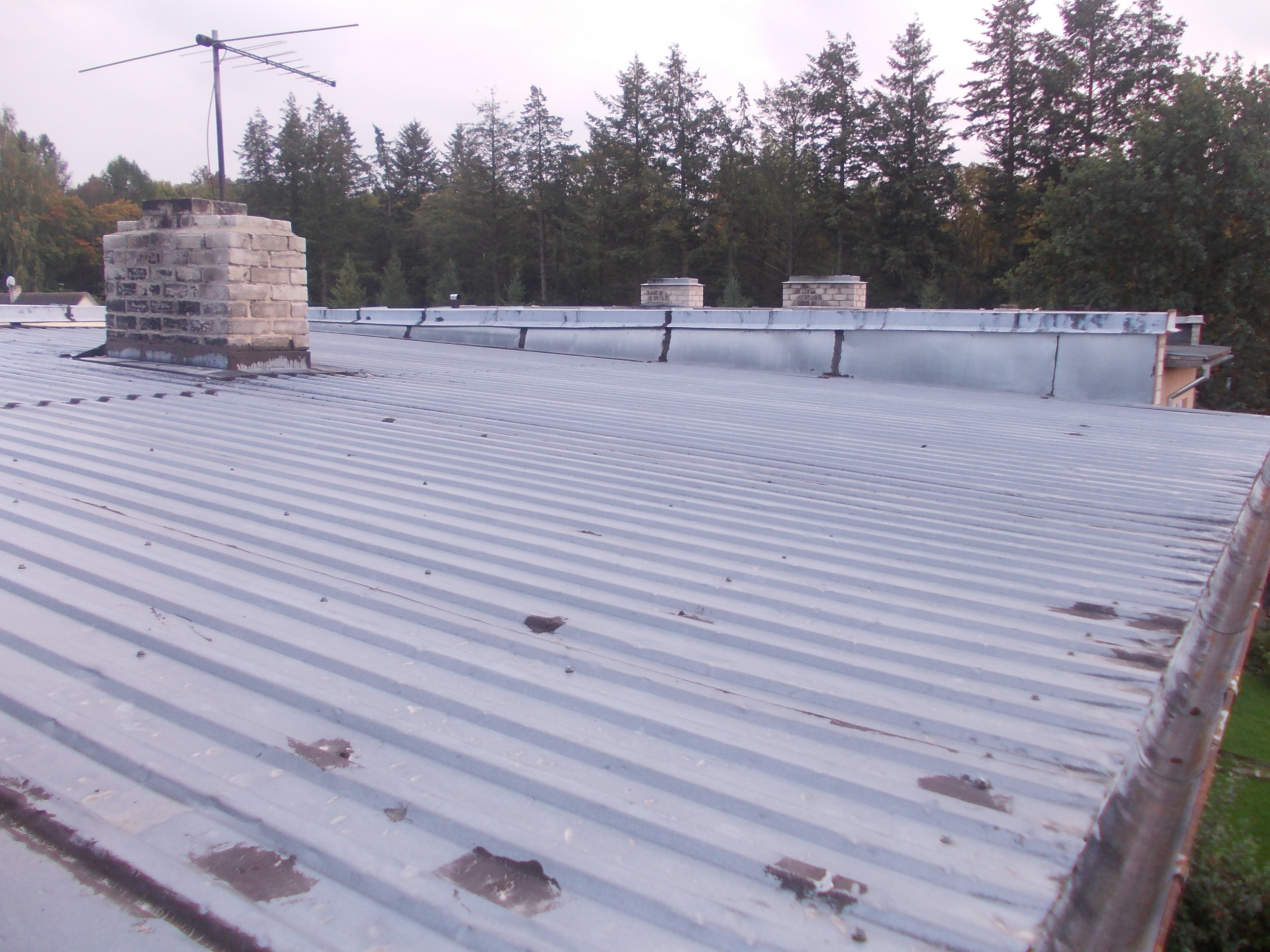 Elumaja vana profiilplekist katus tuleb eemaldada ja asendada ruberoidiga. Lamekatus 80 ruutmeetrit, kalle umbes 10 kraadi.