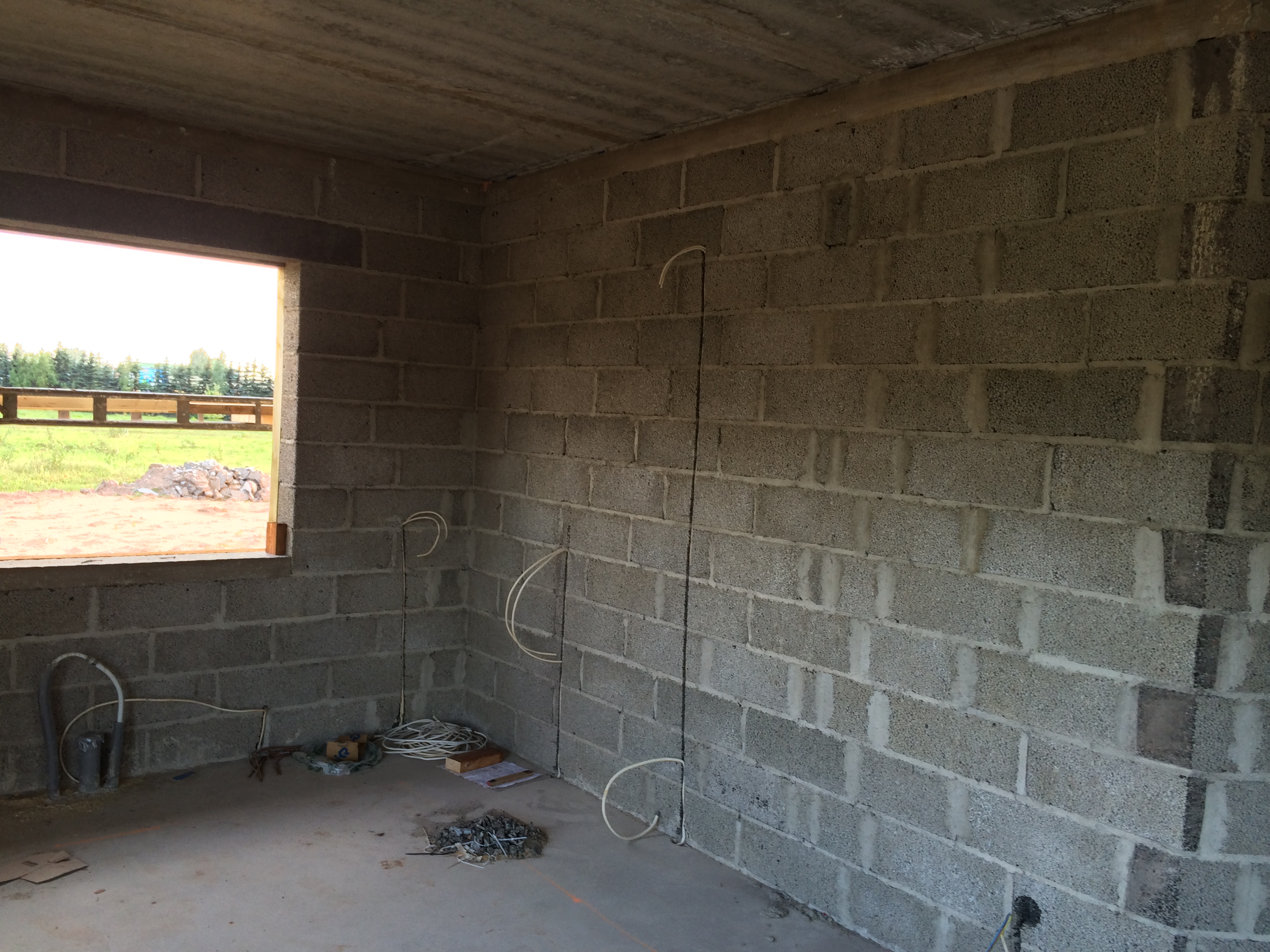 Seinad laotud fibost. Seinad on sirgelt laotud. Seinte pind kokku 340m2