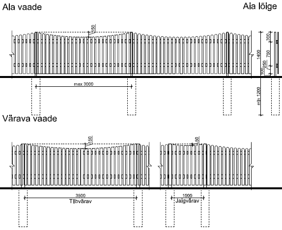 Tellija materjalist paigaldada koos postidega puitlippidest piirdeaed ~150m (sh väravad), 2 jalgväravat (1m) ja 2 autoväravat (3,5m). Lipid paigaldada nö lainetena (vt lisatud joonis). Lipid on praegu kõik 1,4m pikkused ning need tuleb mõõtu lõigata (soovit pärast põõnadele kinnitamist).