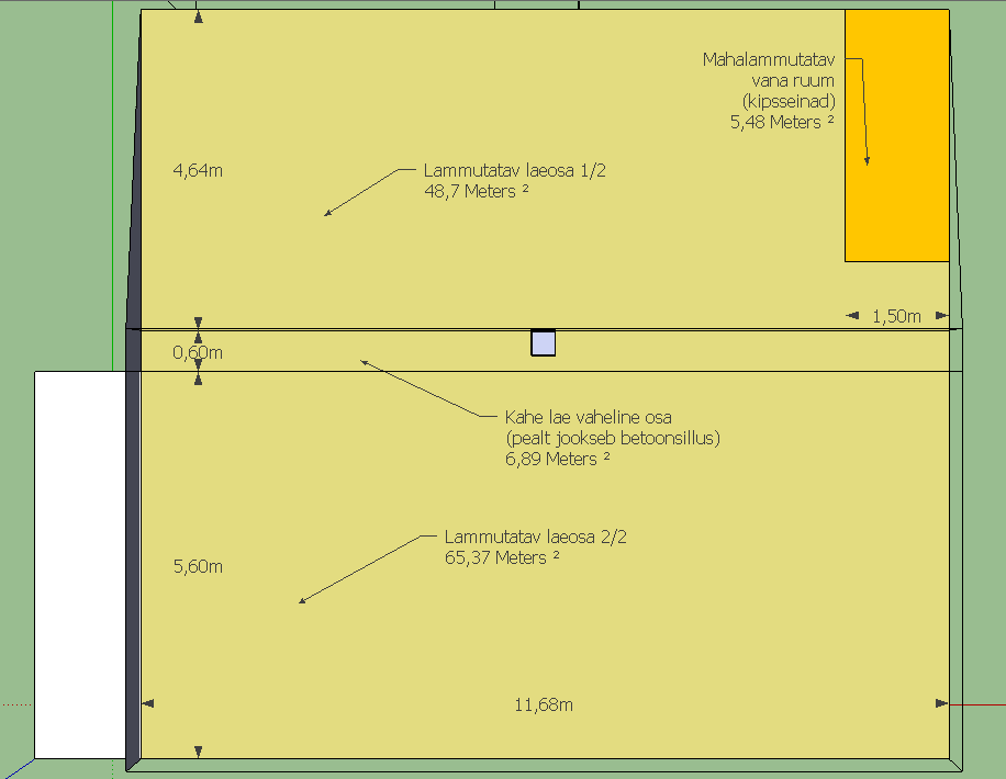 NB! Lae taga on ventialatsioonitorud ja kaablid – neid ei tohi lammutamise ajal kahjustada.