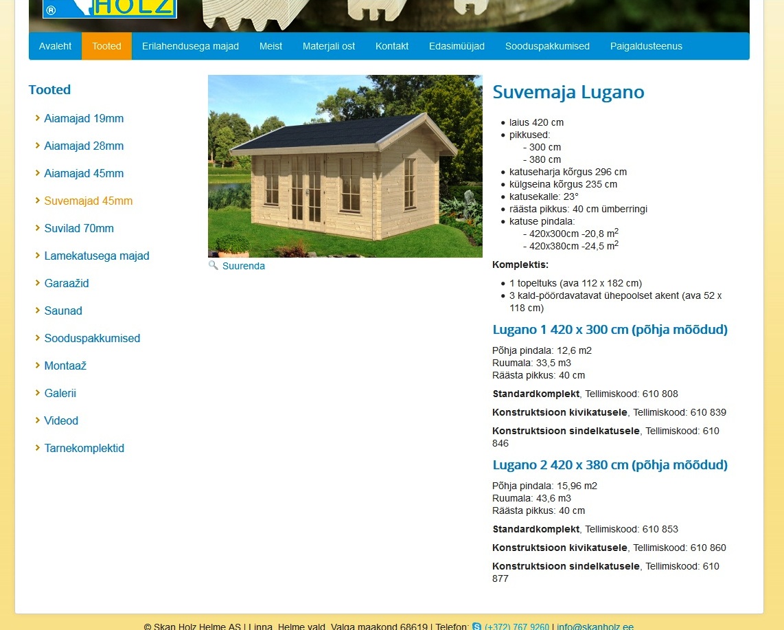 Maja konstruktsioon koos kinnitustega on tellija poolt.