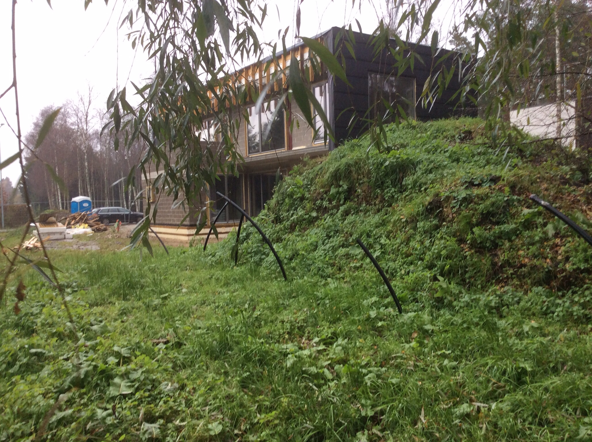 * Maja ümber rajatava tee alt on pinnas kooritud 25cm sügavuselt ja vundamendi ümber on rajatud u 1m laiuselt külmakaitse penoplastiga, mis on kaetud liivaga. Maja ümber on tarvis rajada jalgtee põhi.
