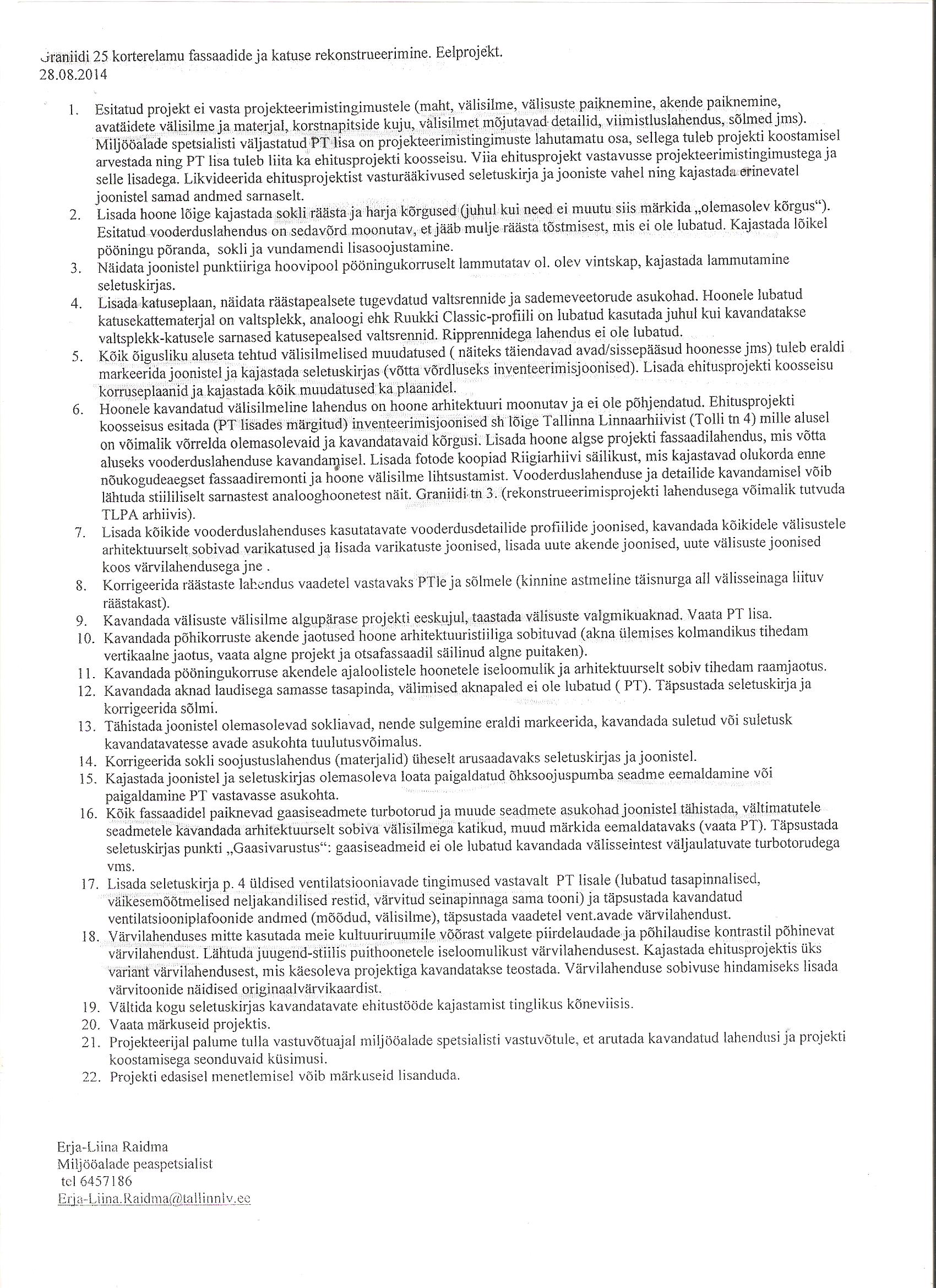 Soovime hinnapakkumust Tallinnas miljööväärtuslikul alal paikneva kahekordse puidust kortermaja renoveerimise projekti täiendamist vastavalt projekteerimistingimustele.