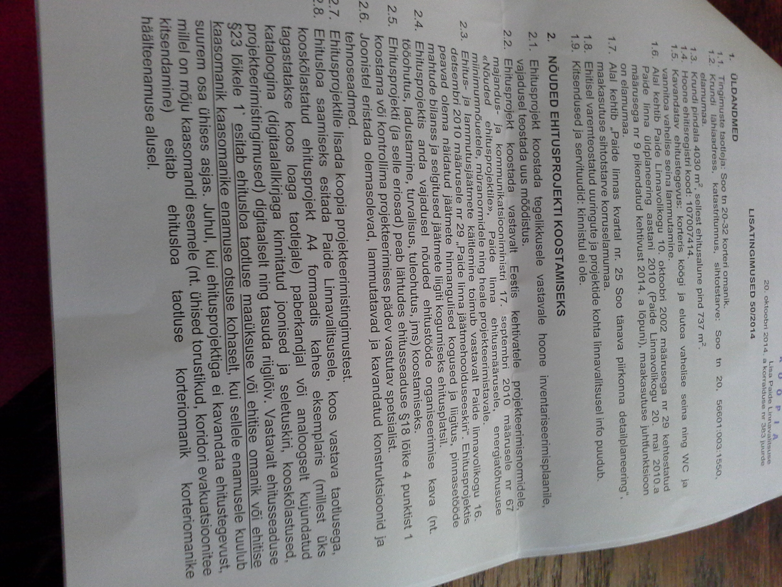 Sisaldab korteri mõõdistamist, kui ei ole plaani olemas, mille käigus selgitame välja ka lammutatavate seinaosade ulatuse. Kolm eksemplari projekti paberkandjal (arvutatud silluse tööjoonised ja muu vajalik töö teostamiseks). Samasuguseid projekte enne teinud Tartusse ja Jõgevale. Hinna sees ka mõistlikud projekti parandused/muudatused, kui peaks vajalik olema. Ei sisalda võimalikke riigilõivusid.