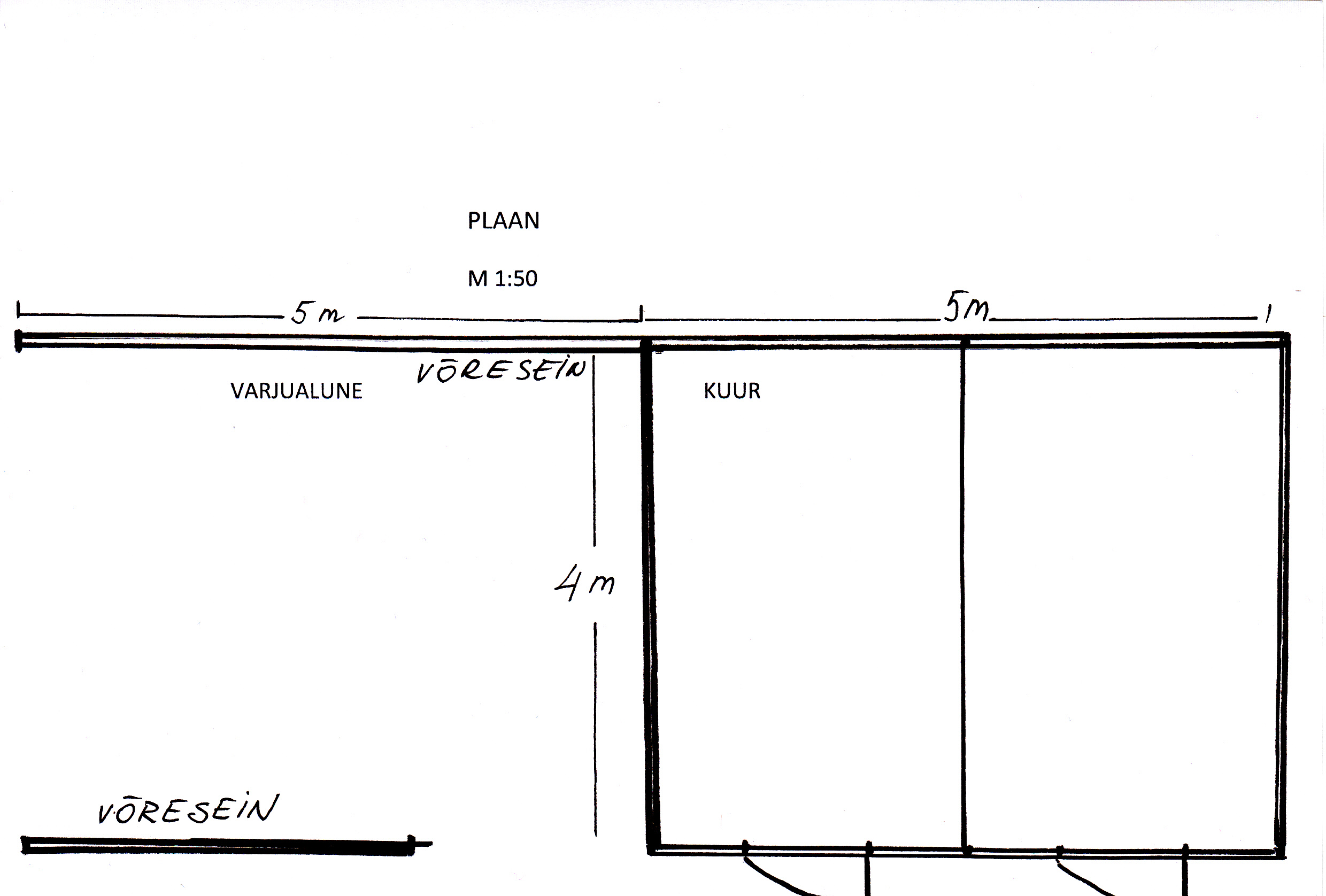 Varjualune : 5 x 4 meetrit, võrestikseinad külgedel ( prussid 5 x 5 cm ), immutusvahend ( must )