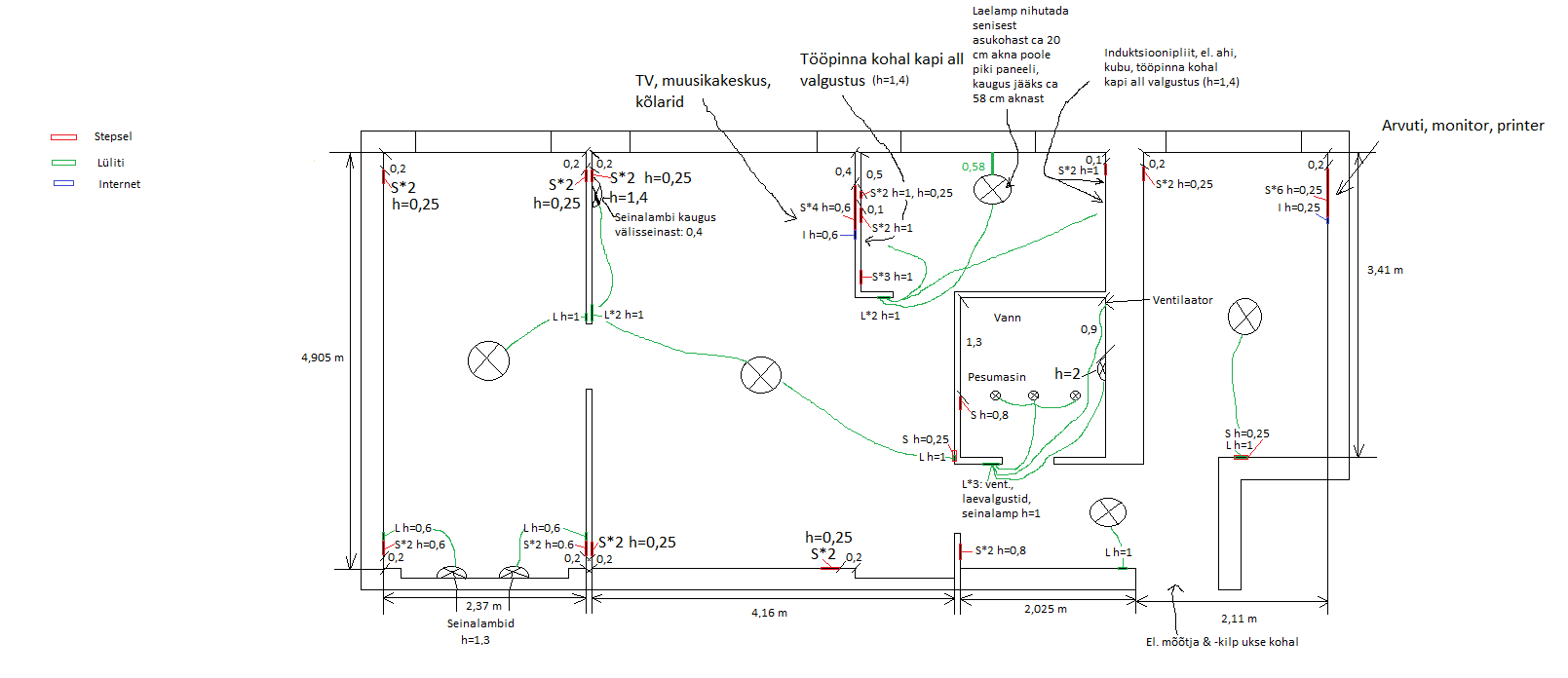 Hinnas siis soovitud tööd. Kaabeldus, pistikute/lülitite paigaldus, kilbi ühendamine. Joonisel ei paistnud nõrkvoolu( soovi korral mahutaks ka need tööd hinna sisse ära, muidugi mõistuse piires). Tööaeg ca 40-50h. Firmal olemas MTRi elektritööde registreering. Kõike paremat soovides Toomas.