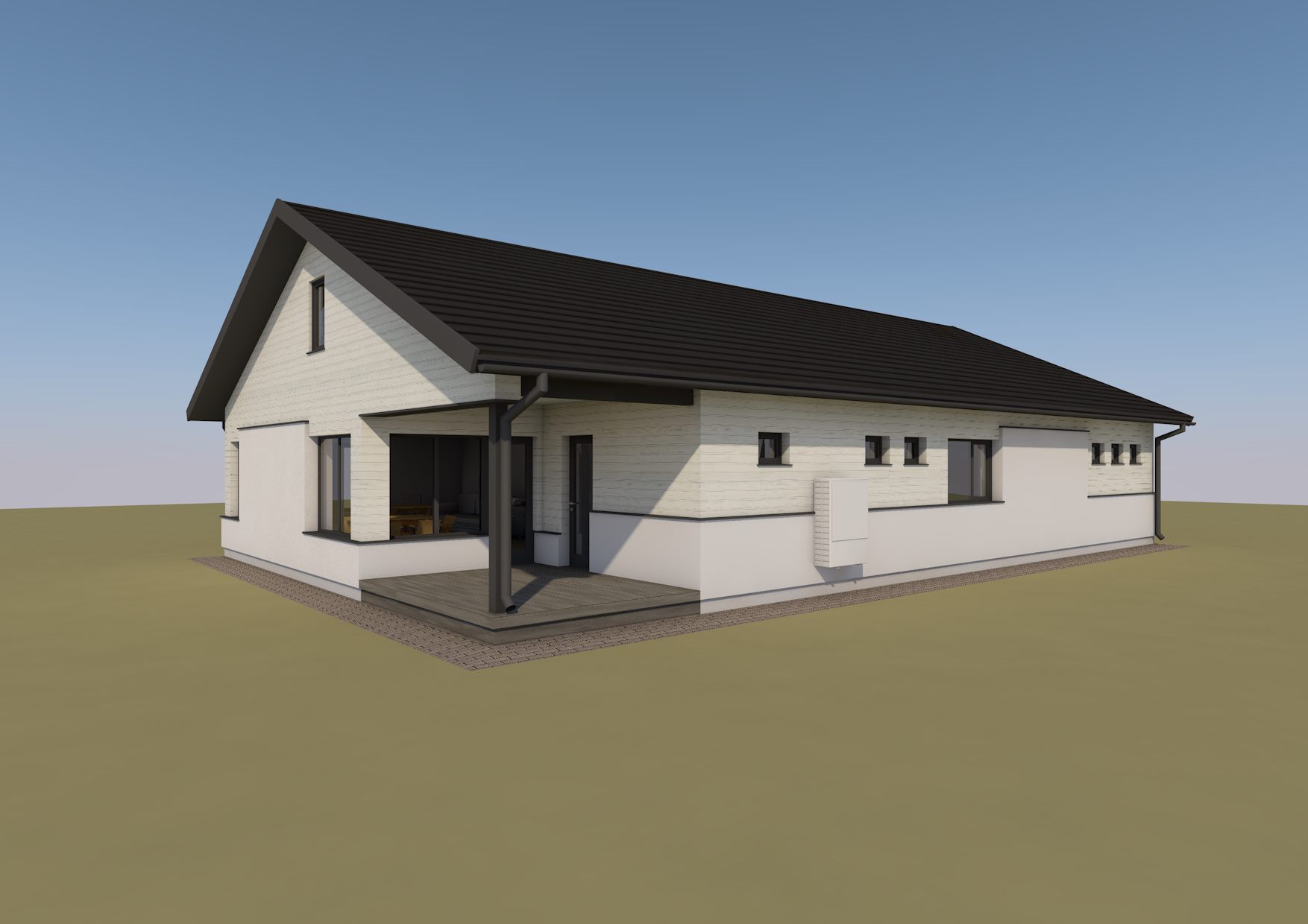 - täielikku välisviimistlustust ja vihmaveesüsteemi.