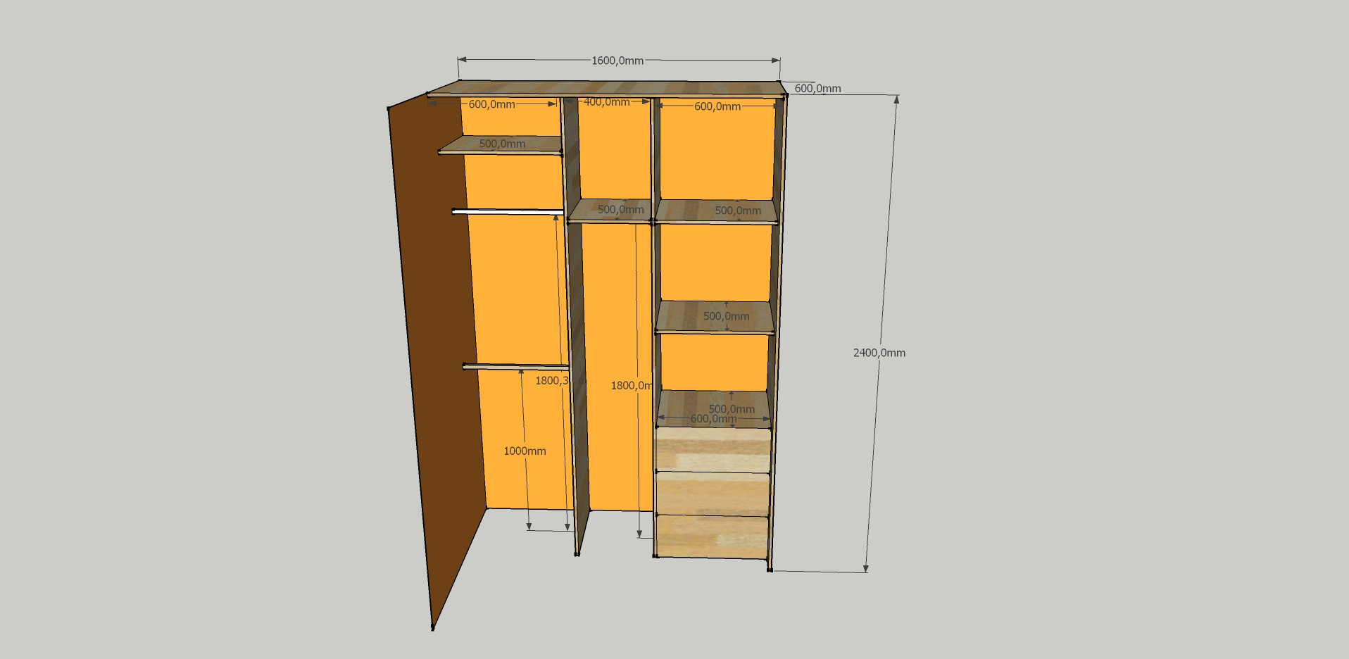 Sahtlite sisu kõrgus 250mm, sahtlite laius 600mm, sahtlite sügavus 500mm.