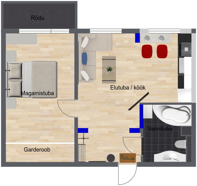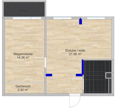 - põrandale panna laminaat / parkett (võimalik et osaliselt oleks vaja põrandat vahetada, aga 95% on korras)