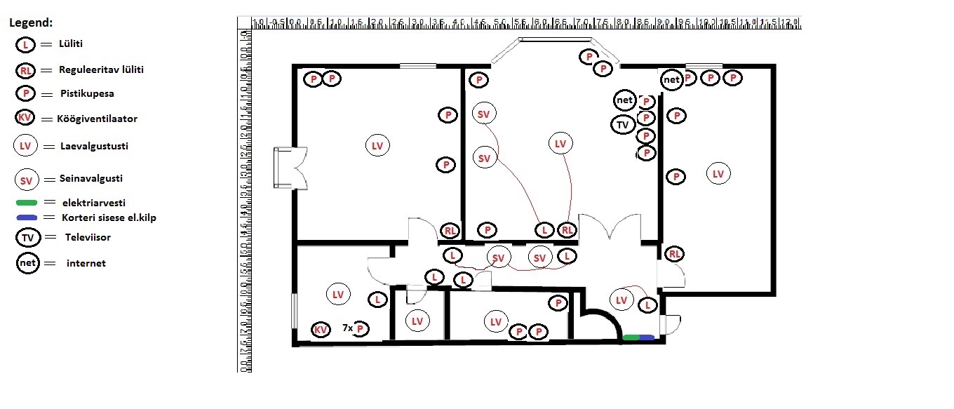 Valgustite/lülitite/pistikute asukohad selgitamisel.