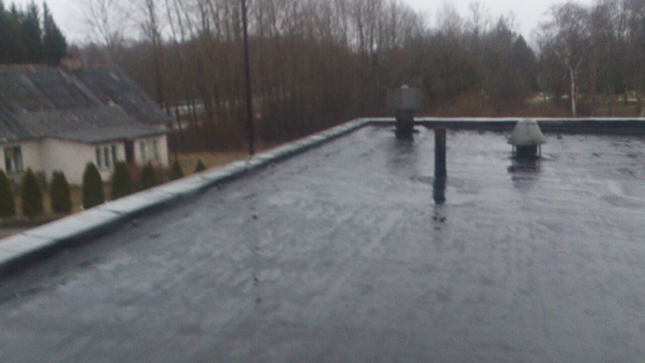 2. Aluspind tõrvapapi laadse tootega kaetud katus.