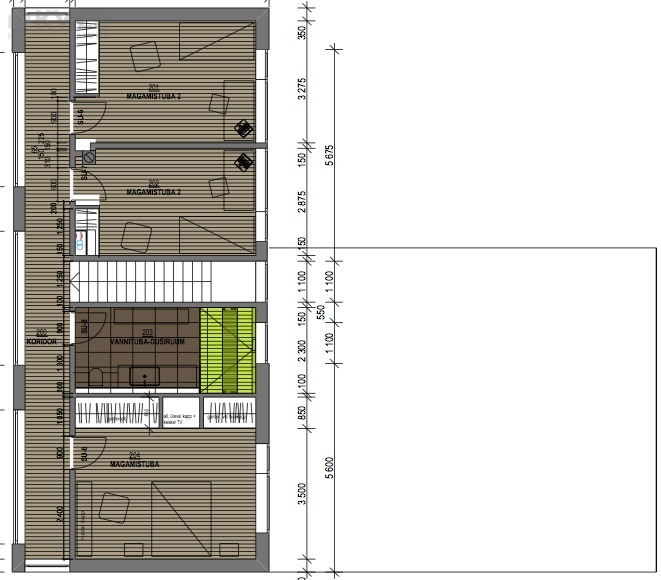 Elamu on 2-korruseline, lamekatusega, ilma keldrita ehitis üldpinnaga 237,7 m2. Majal peaks olema kivimaja ja küte gaasiga- trass krundil. Põrandaküte mõlemal korrusel, igas toas oleks võimalus temperatuuri reguleerida. Majal oleks esimesel korrusel ka kamin.