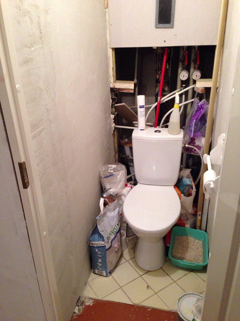 WC-s on vaja plaatida erineva paksusega siniste plaatida põrandat 1,5 m2 ja kinnitada güproki 1 m2. Pahteldada seined Weberiga ja lihvida. Kinnitada WC potti.