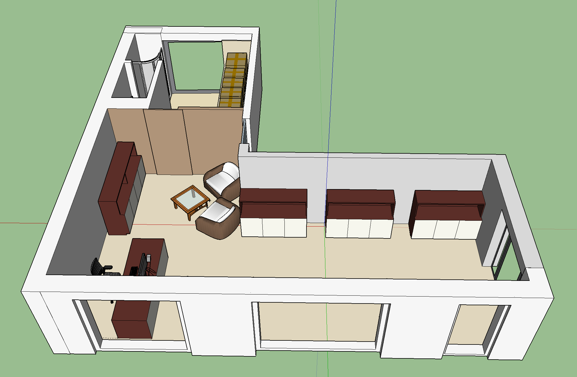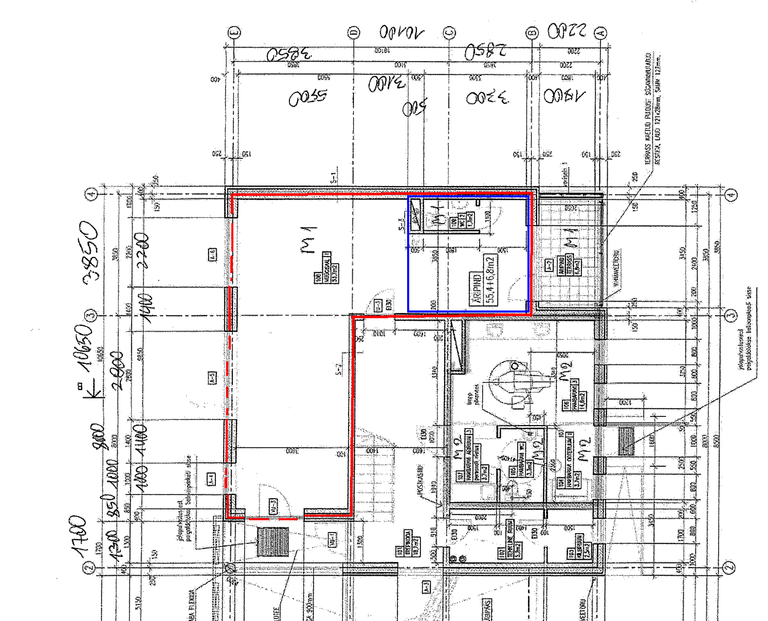 - valmis teha seinad ja laed värvimiseks ja värvida. (valja arvatud sinine osa (vaata plaani pilti), sinna teeme vahe seina ise - nii eraldades poe ruumi ja lao/vetsu ruumi.)