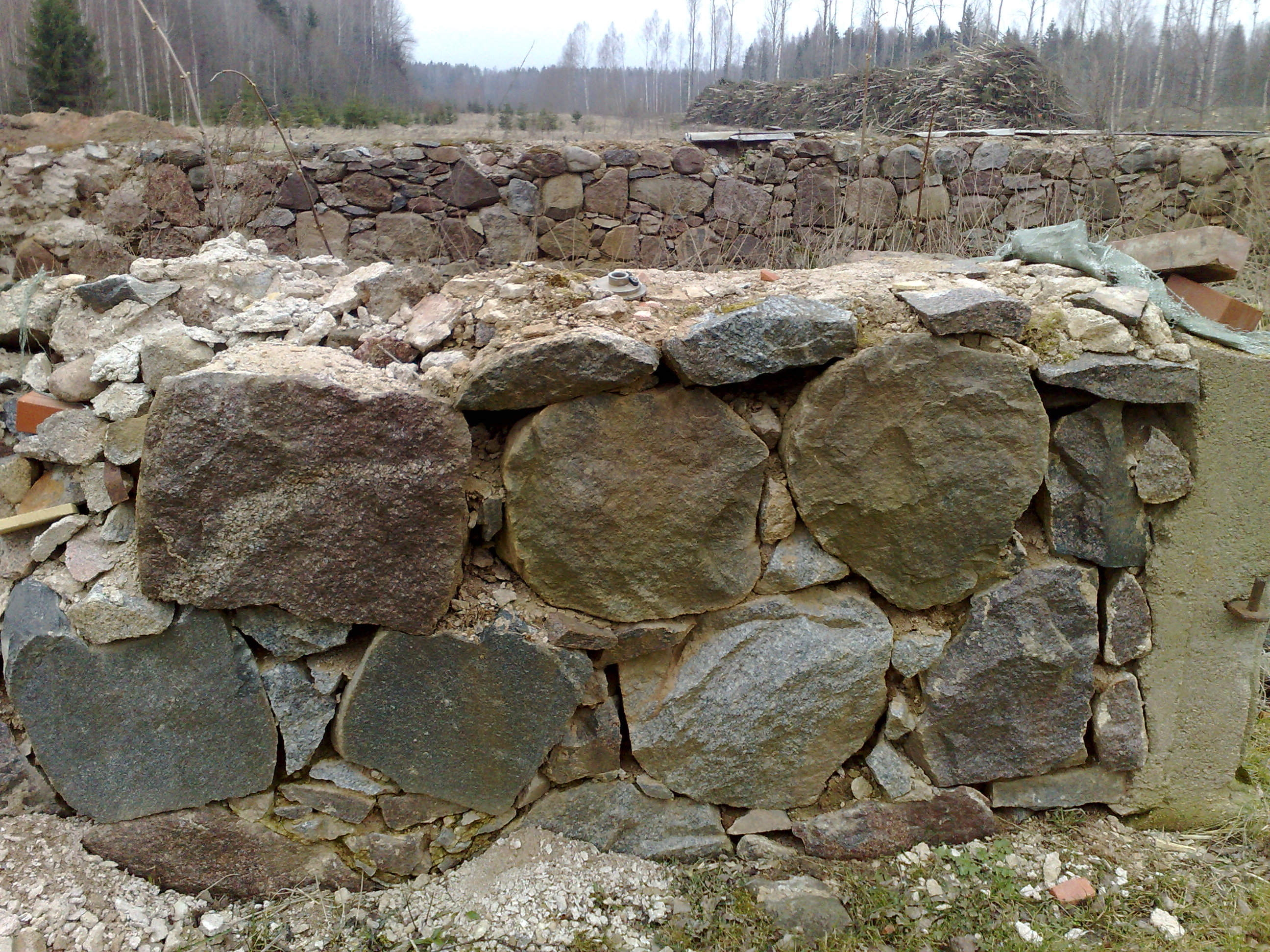 Maakivimüüri ladumine ümber keldri(kolm külge).Ühepoolne müür,sisemine külg jääb vastu mulda.Müüri kogupikkus ca20m ja kõrgus ca 1,5m.